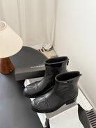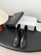 CC 2025 Vintage Cambon Mid-Calf Short Boots Black Cowhide 550635