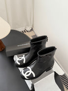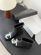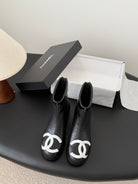 CC 2025 Vintage Cambon Mid-Calf Short Boots Black White Cowhide 550634