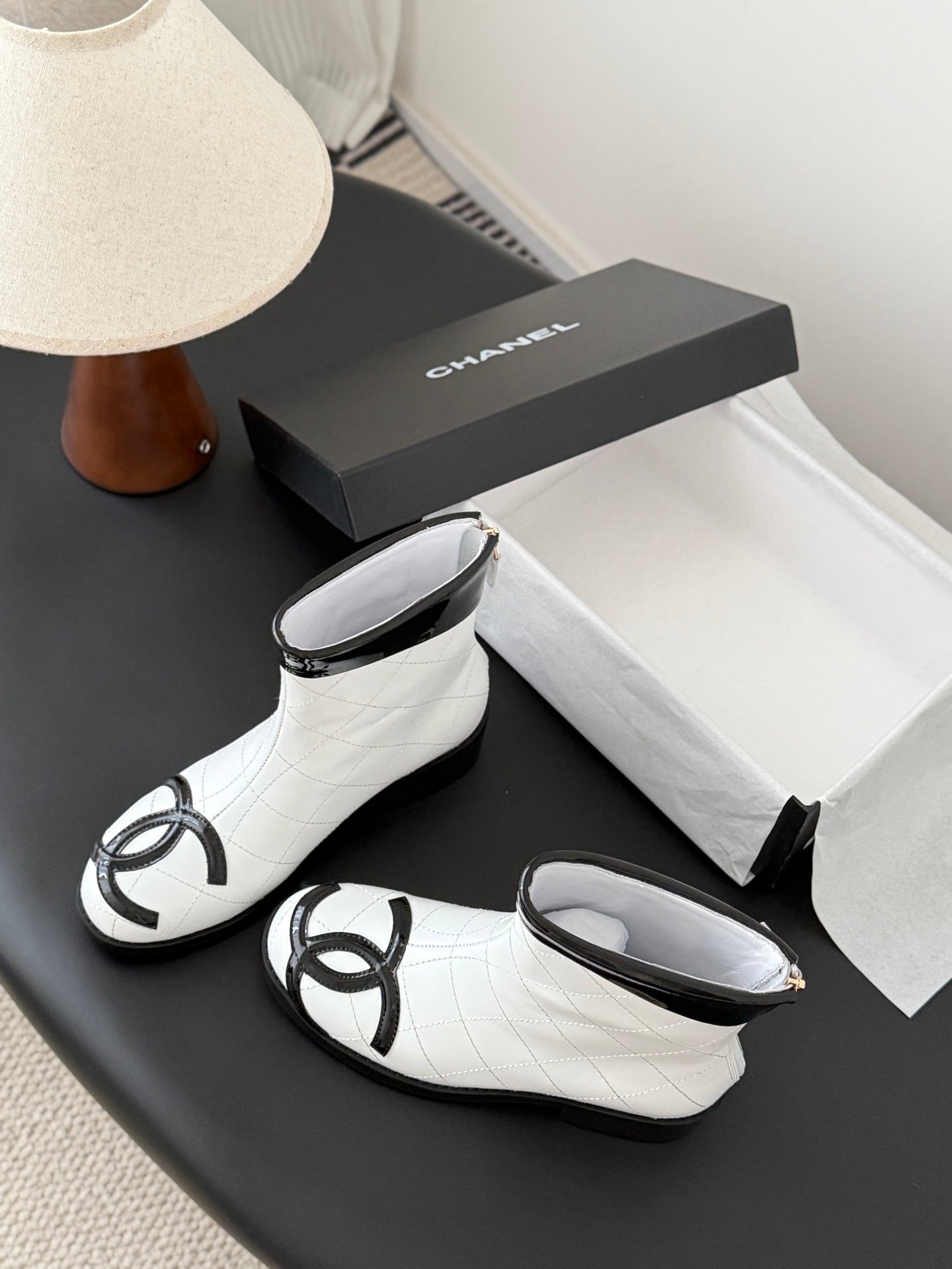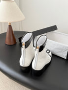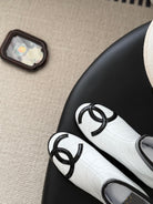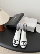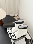 CC 2025 Vintage Cambon Mid-Calf Short Boots White Black Cowhide 550633