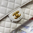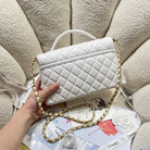 CC 25P Medium Flap Bag 25cm Top Handle Cream Calfskin Gold Hardware