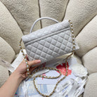 CC 25P Medium Flap Bag 25cm Top Handle Grey Calfskin Gold Hardware