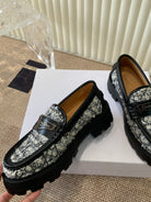 CD Boy Platform Loafer In Black Mix White Tweed Fabric And Cowhide 113485