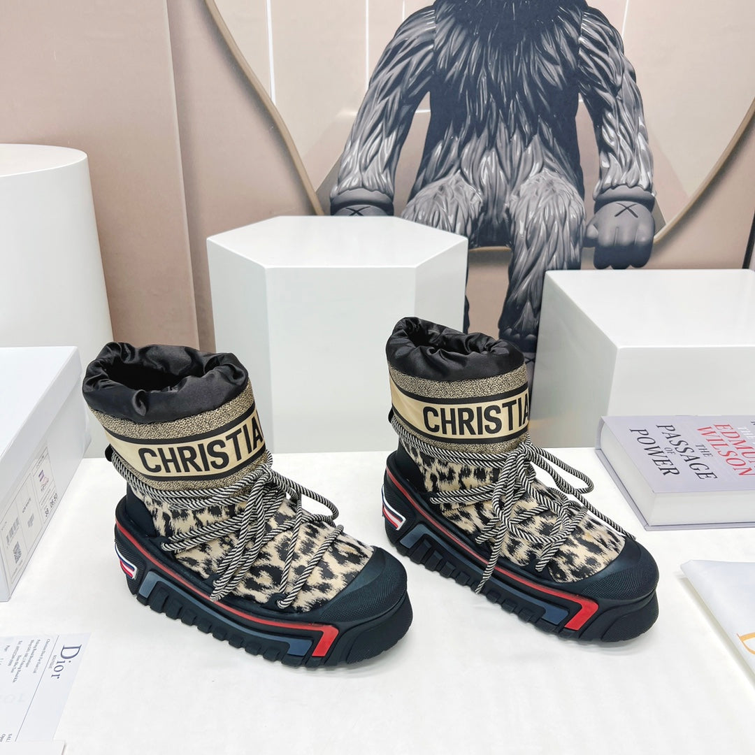 CD Snow Ankle Boots Black Beige Cowhide Nylon Fabric 539662