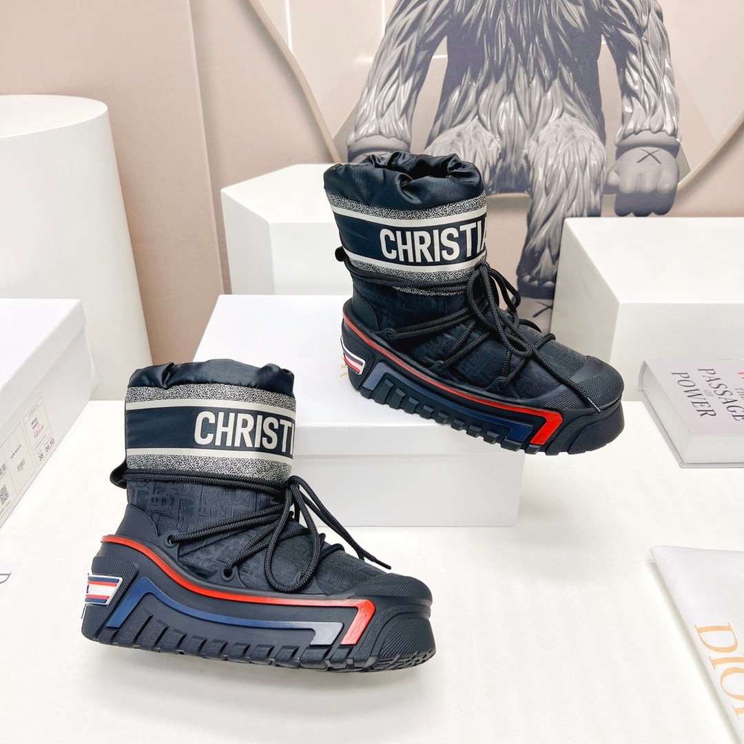 CD Snow Ankle Boots Black Red Cowhide Nylon Fabric 539658