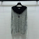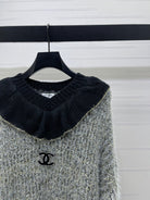 Chanel 2025 Ruffled Collar Shimmering Sweater Gray Black Polyester Wool 319566