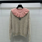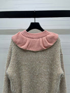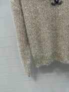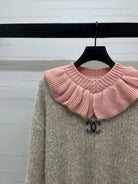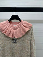 Chanel 2025 Ruffled Collar Shimmering Sweater Beige Pink Polyester Wool 319565