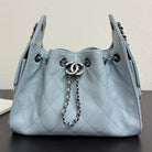 Chanel 2026 Hobo Bag 22cm Light Blue Grained Calfskin With Silver Hardware