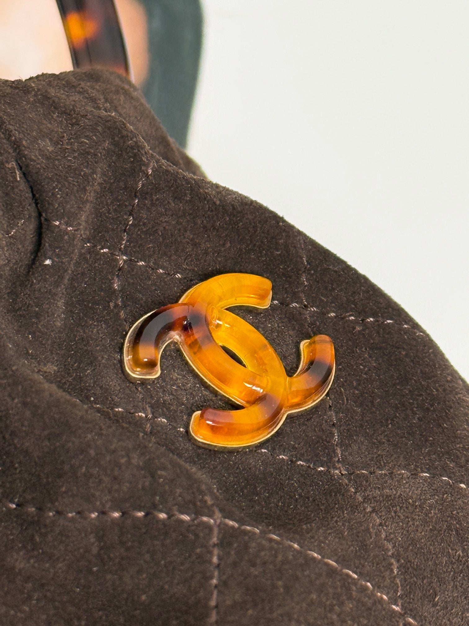 Chanel 2026 Pouch 24cm Brown Tortoiseshell Suede Effect Plexi