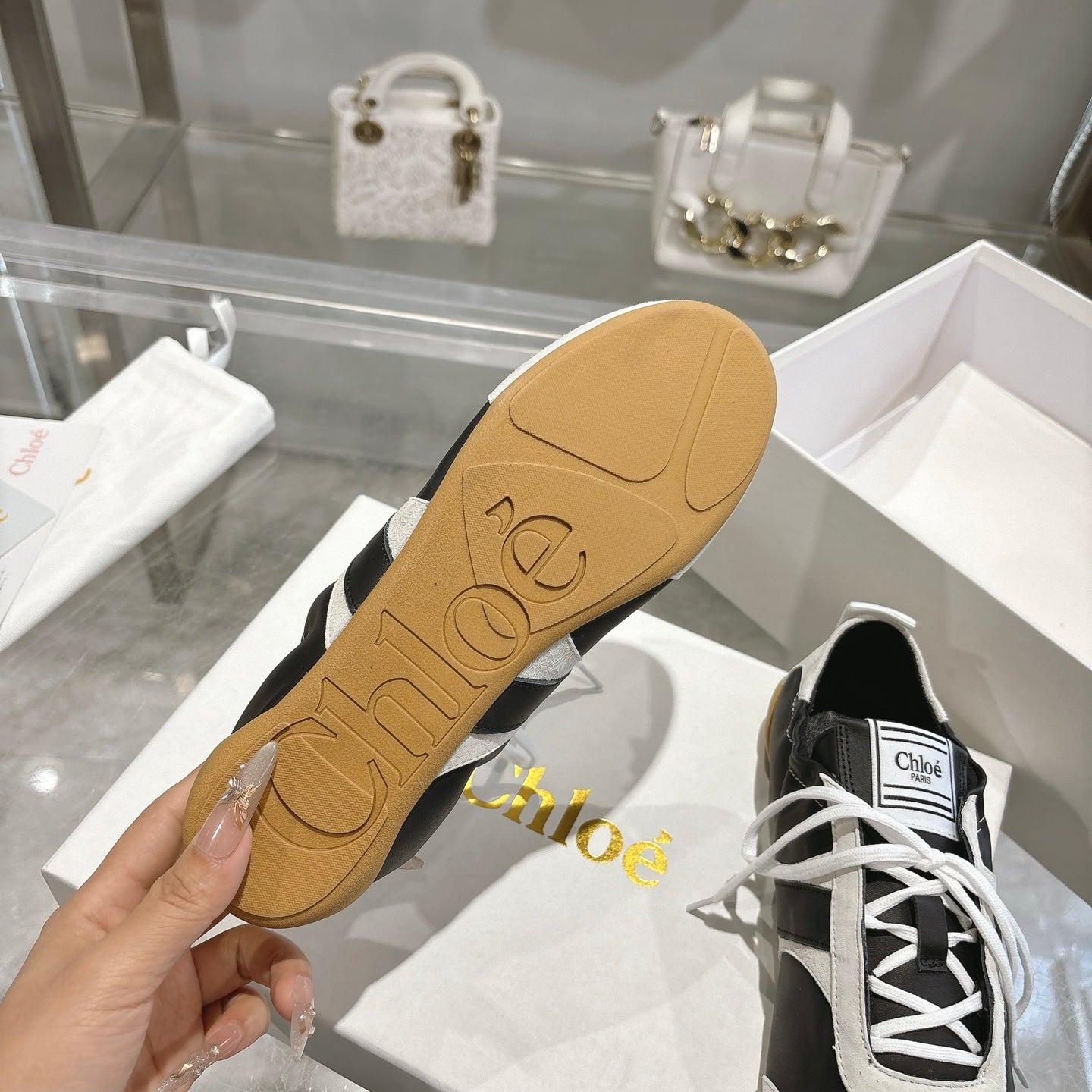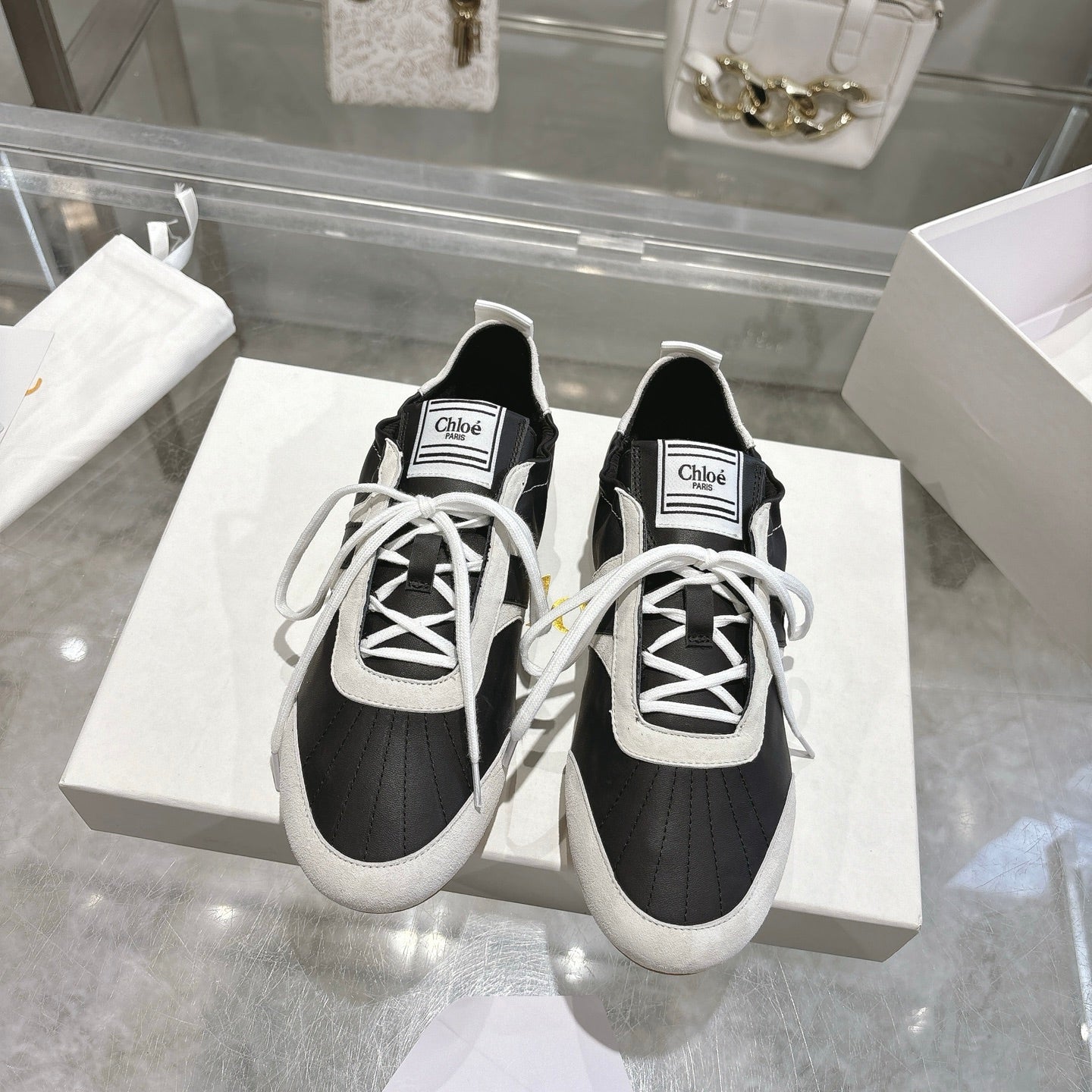 Chloe ballet flat casual shoes black white cowhide 518814