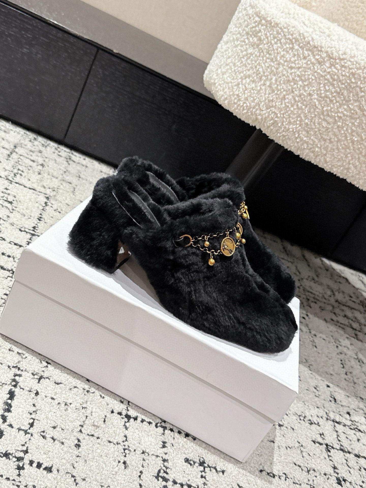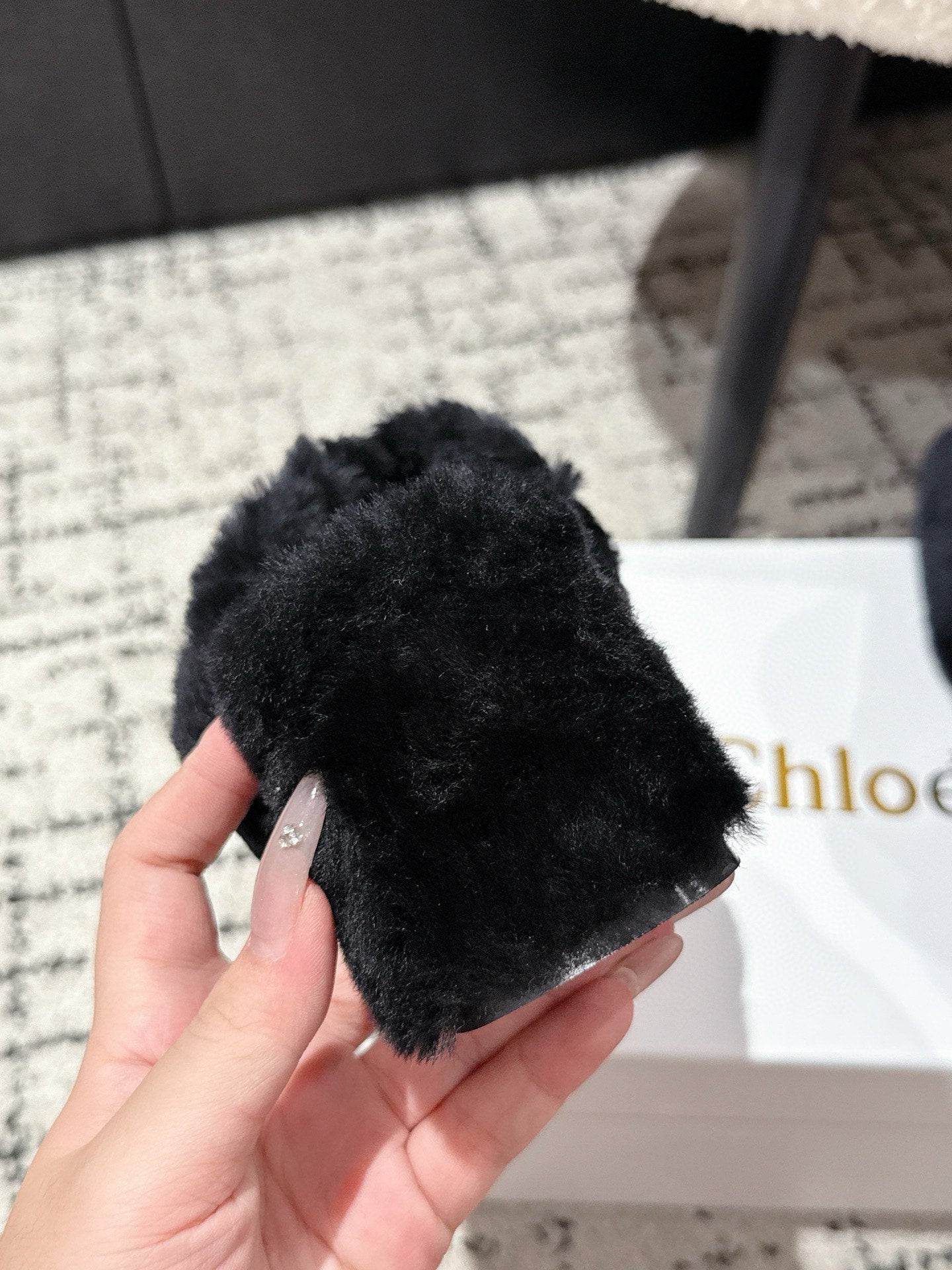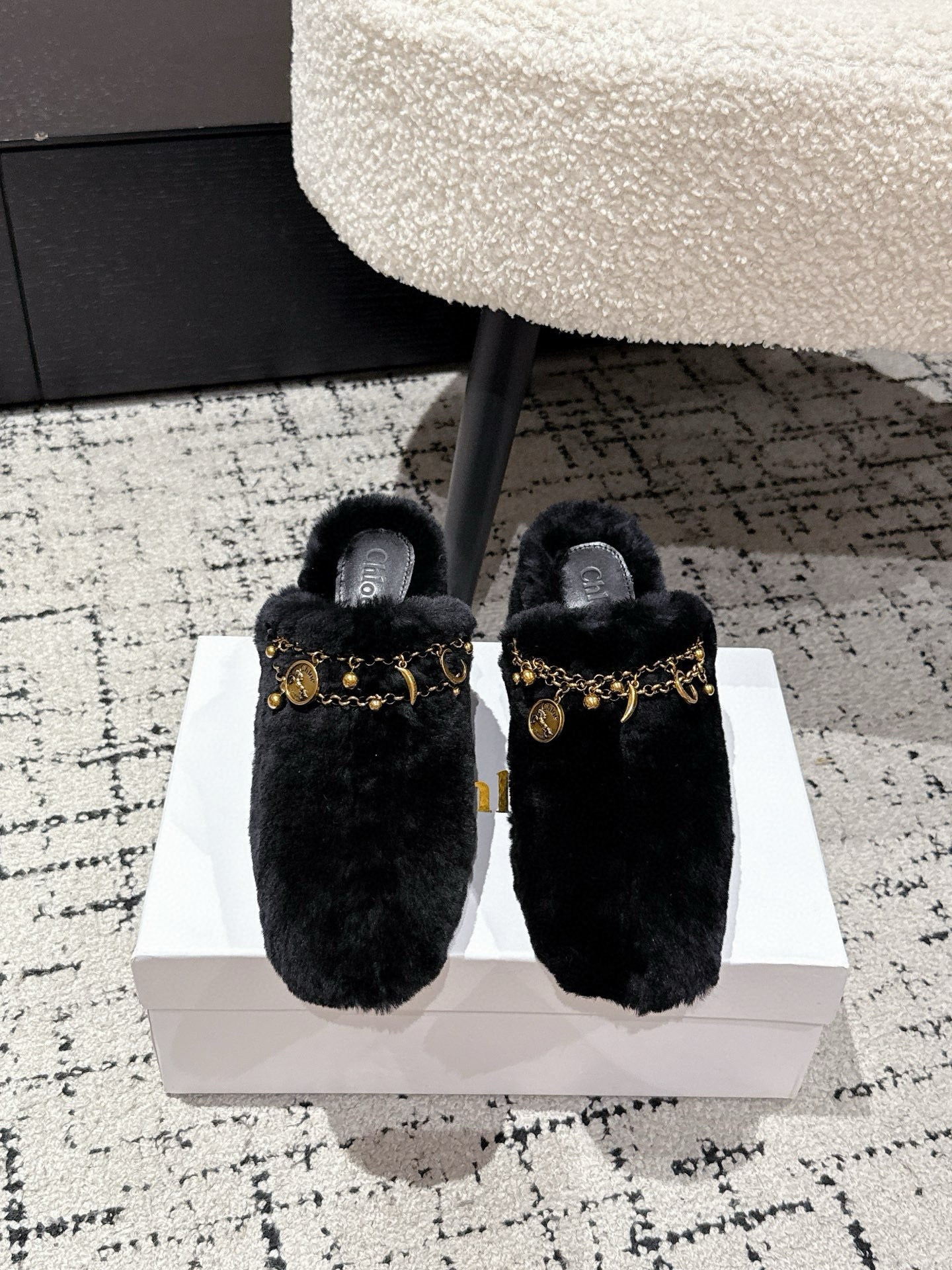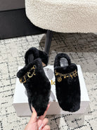 Chloe Covered Fur Slippers Black Wool 514327