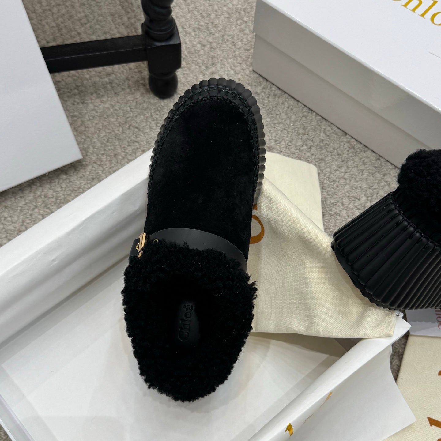 Chloe Nama Shearling-Lined Mule Black Suede 523135