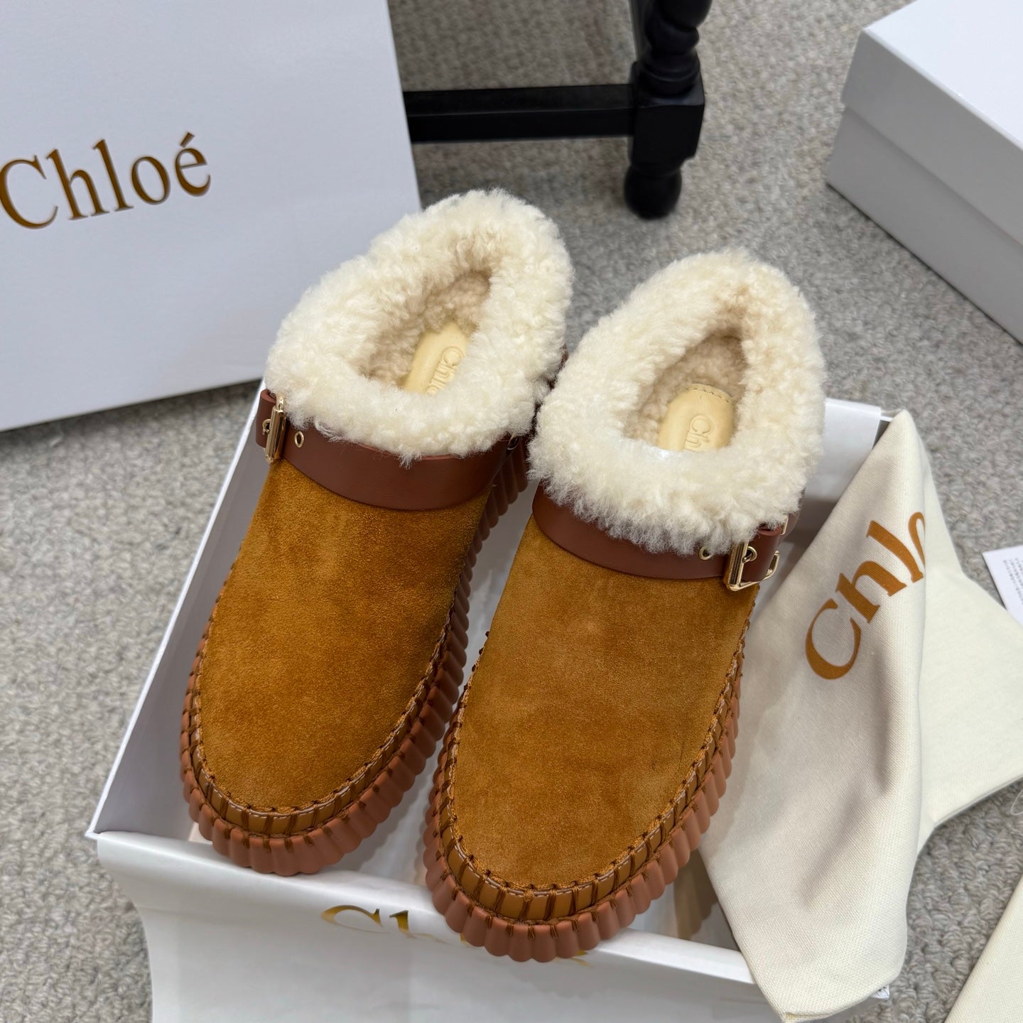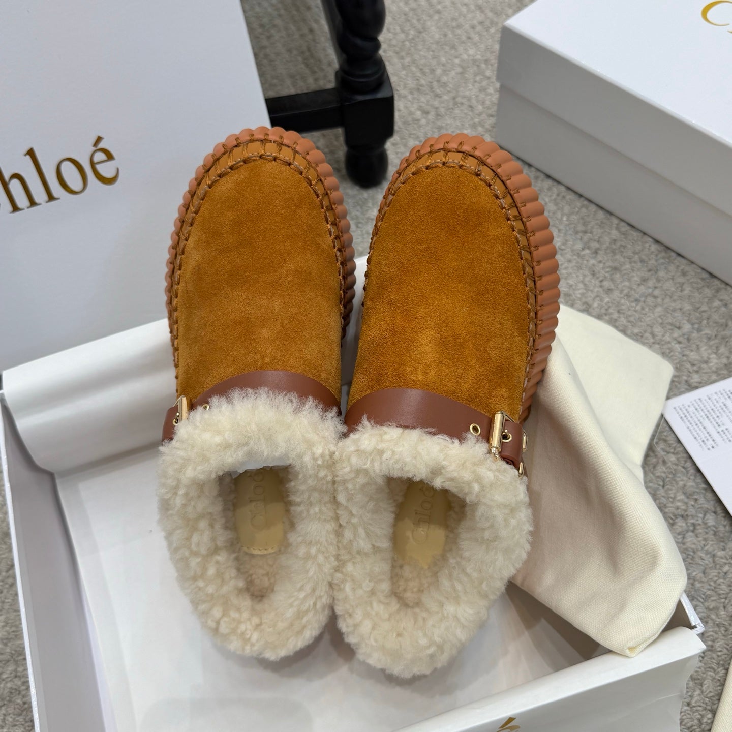 Chloe Nama Shearling-Lined Mule Brown Suede 523133