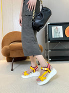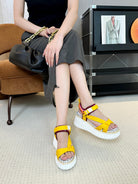 CHLOÉ NAMA WEDGE SANDALS IN BRIGHT YELLOW FABRIC AND WHITE RUBBER
