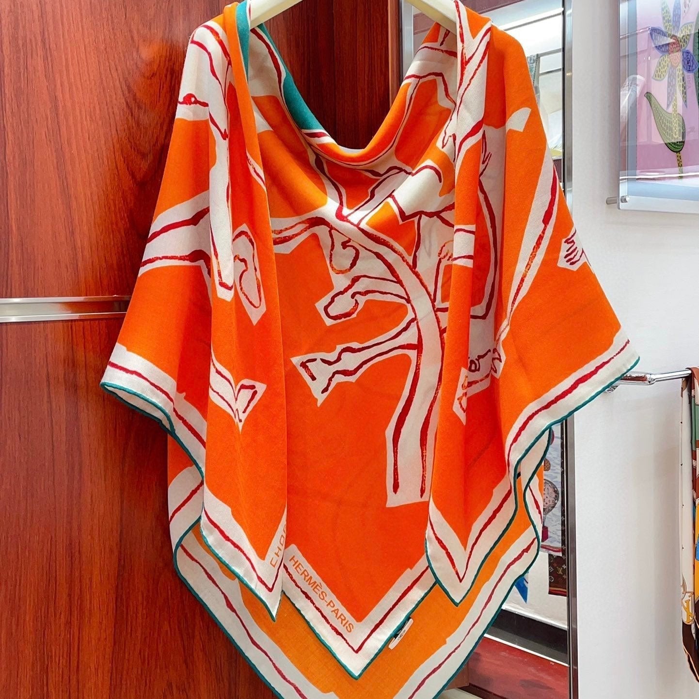 Choregraphie Equestre Pareo Scarf 140 CM Orange Colorful Cashmere And Silk 393170