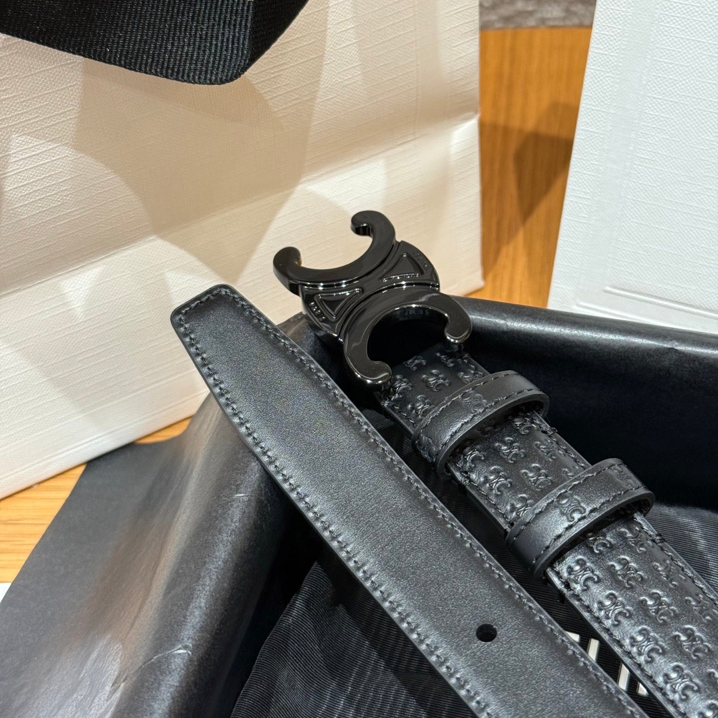 CL Black 25mm Triomphe Enamel Monogram Black Cowhide 597410