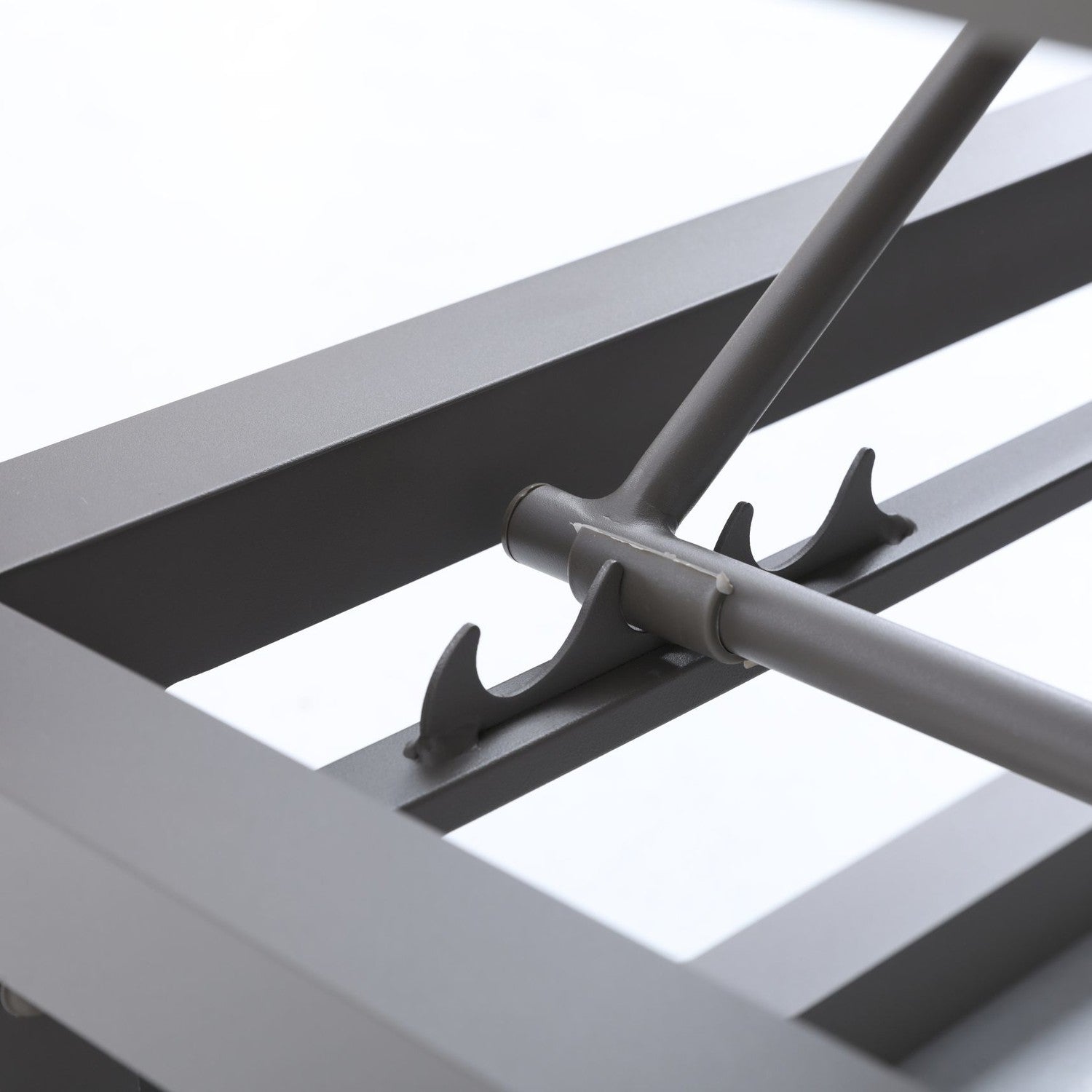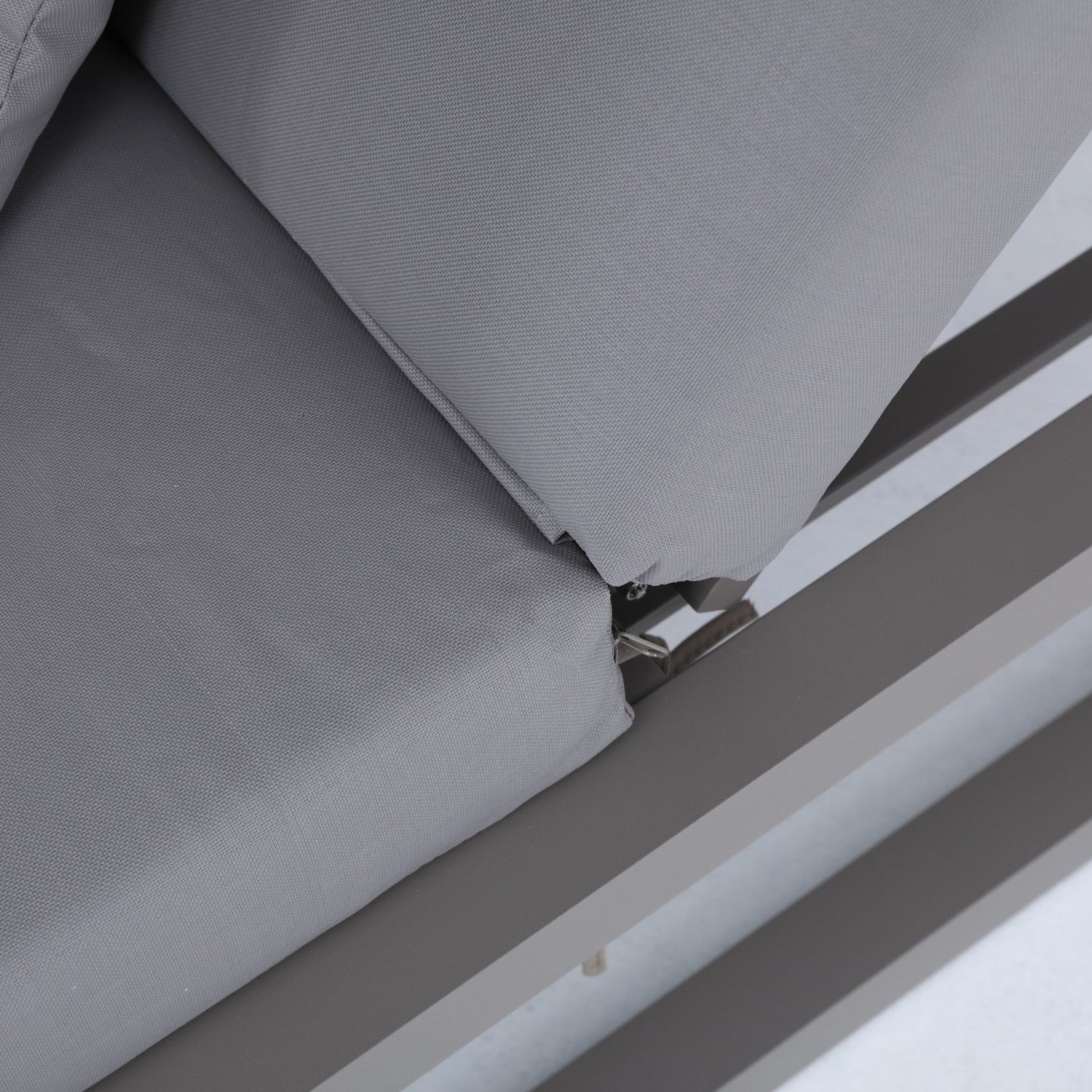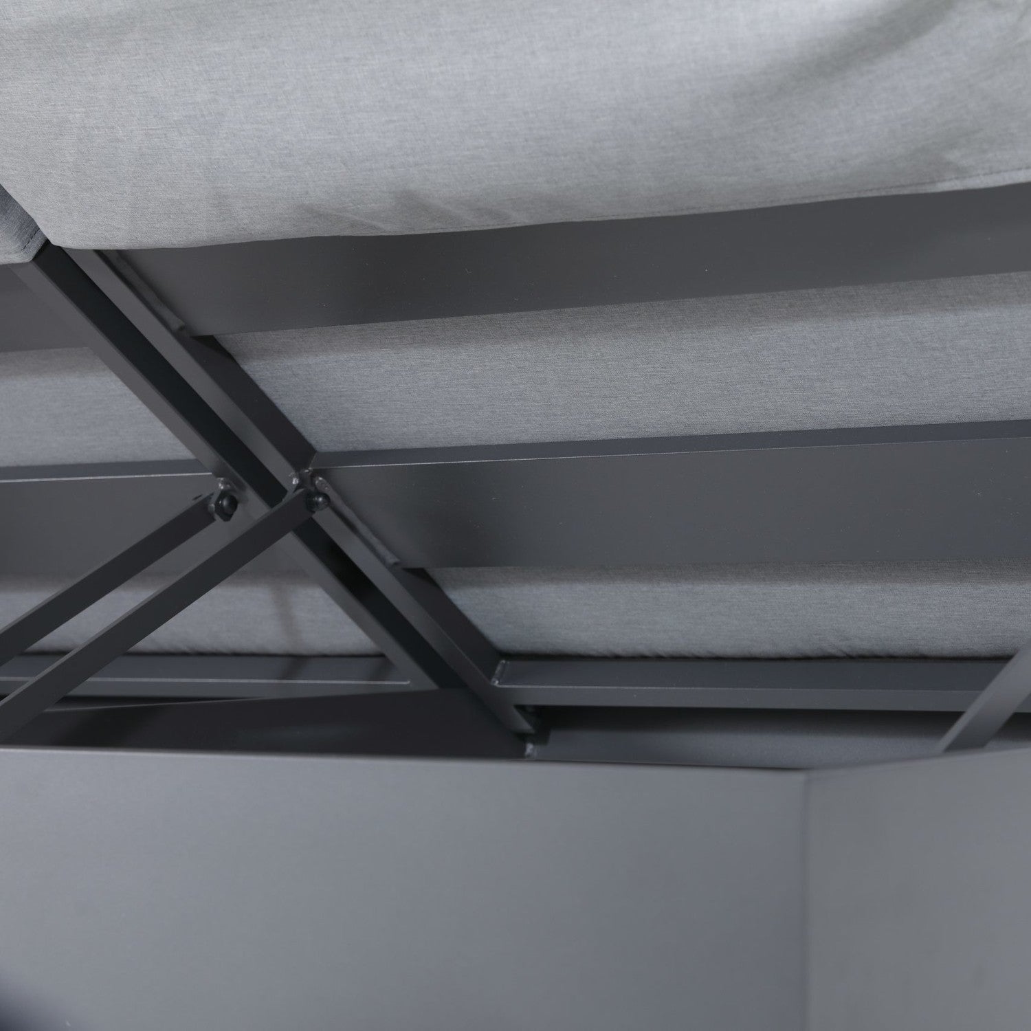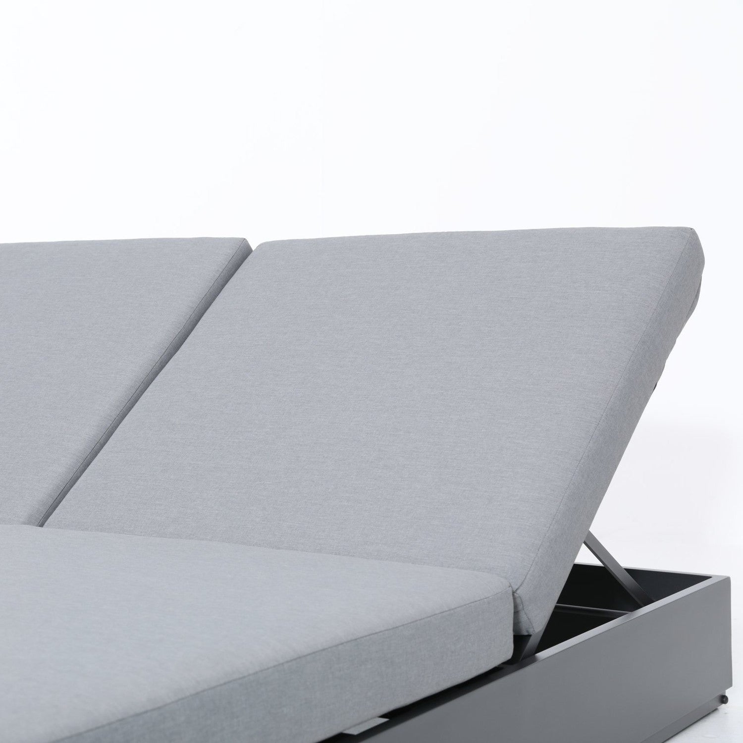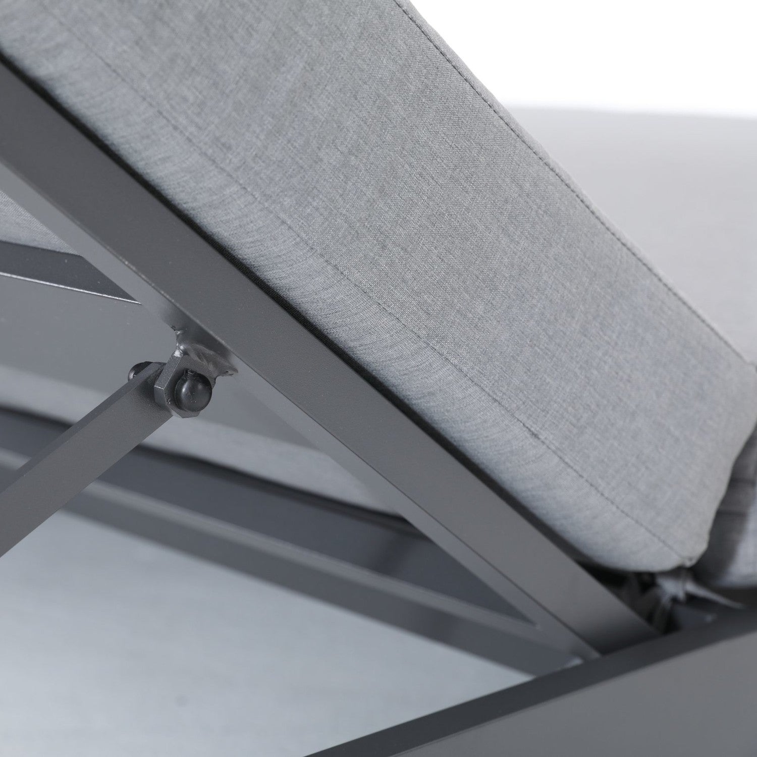Create an oasis with this lovely Avola Daybed, make it the centerpiece of your backyard sanctuary. This spacious and comfortable daybed is perfect for enjoying lazy summer days and long summer nights. Stylishly covered cushions with fabric upholstery is supported by a steel frame to create 2 dual adjustable sunbeds from either side. The base of the bed is made from aluminum and is mounted on wooden feet. The grey canopy curtain tie-backs are excellent for providing privacy or shade on hot sunny days.