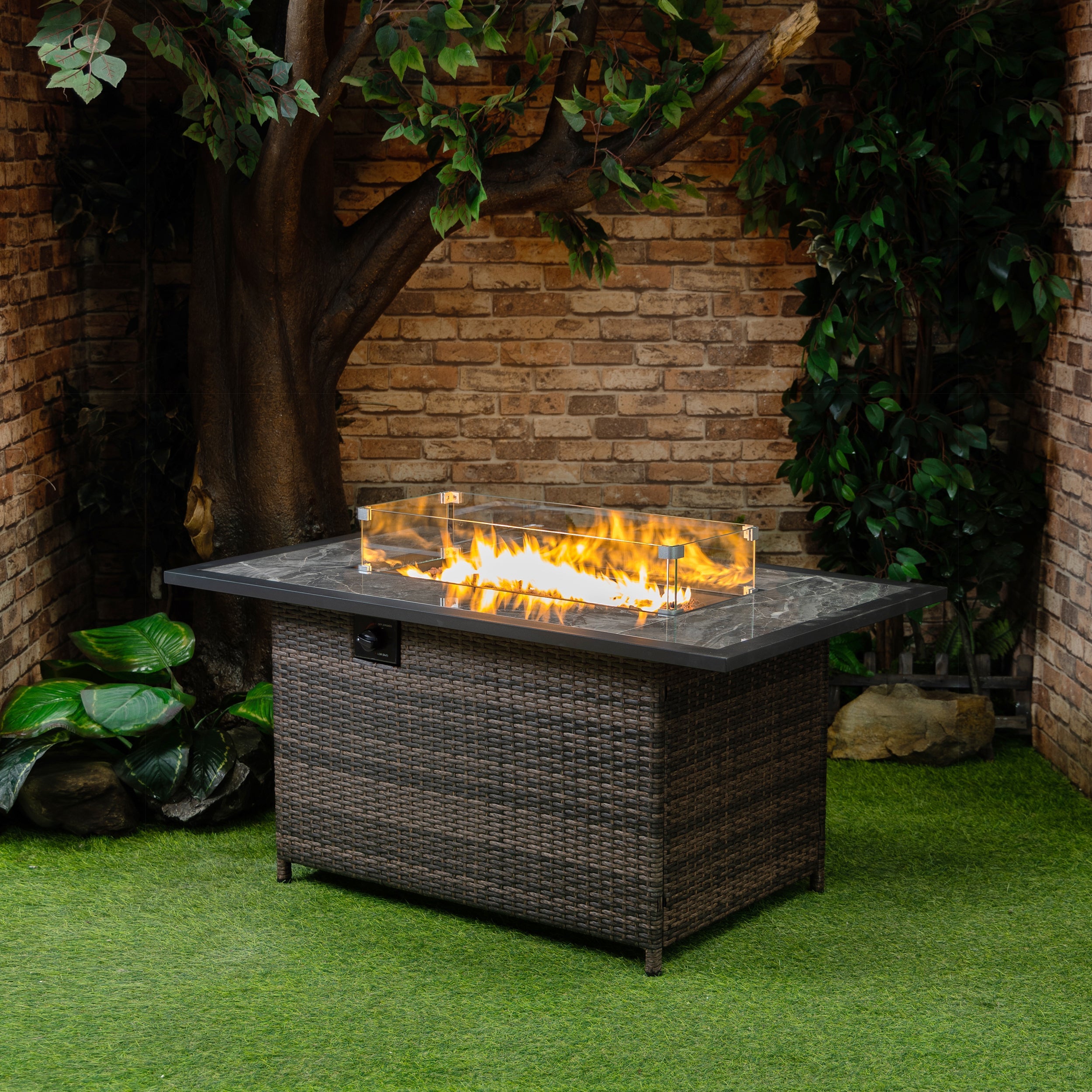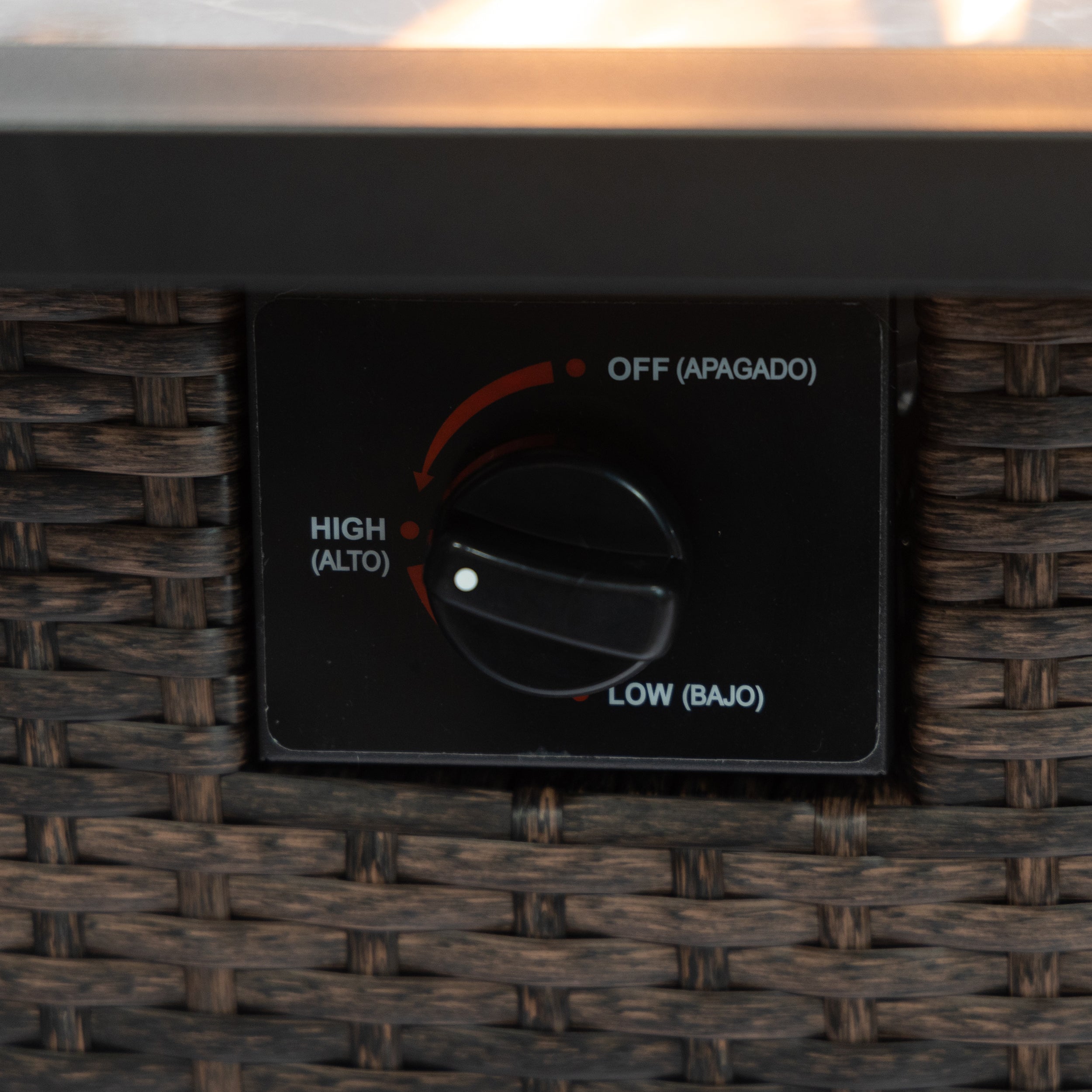 20lbs wicker gas outdoor firepit table with tile tabletop.