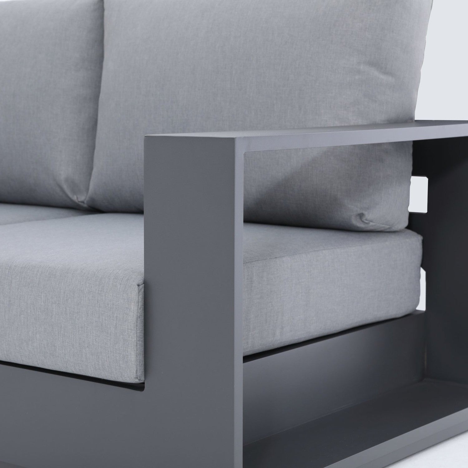 The Ficarazzi Outdoor Sofa Set & Coffee Table collection brings exceptional comfort and functionality, making it a stunning addition to your backyard… spruce up your outdoor space and take the party outside. Perfect to kick back and enjoy the sun with family and friends. Durable all-weather powder-coated aluminum structure, large foam cushions, easy-to-care fabric with conveniently designed zippers for quick removal and wash.