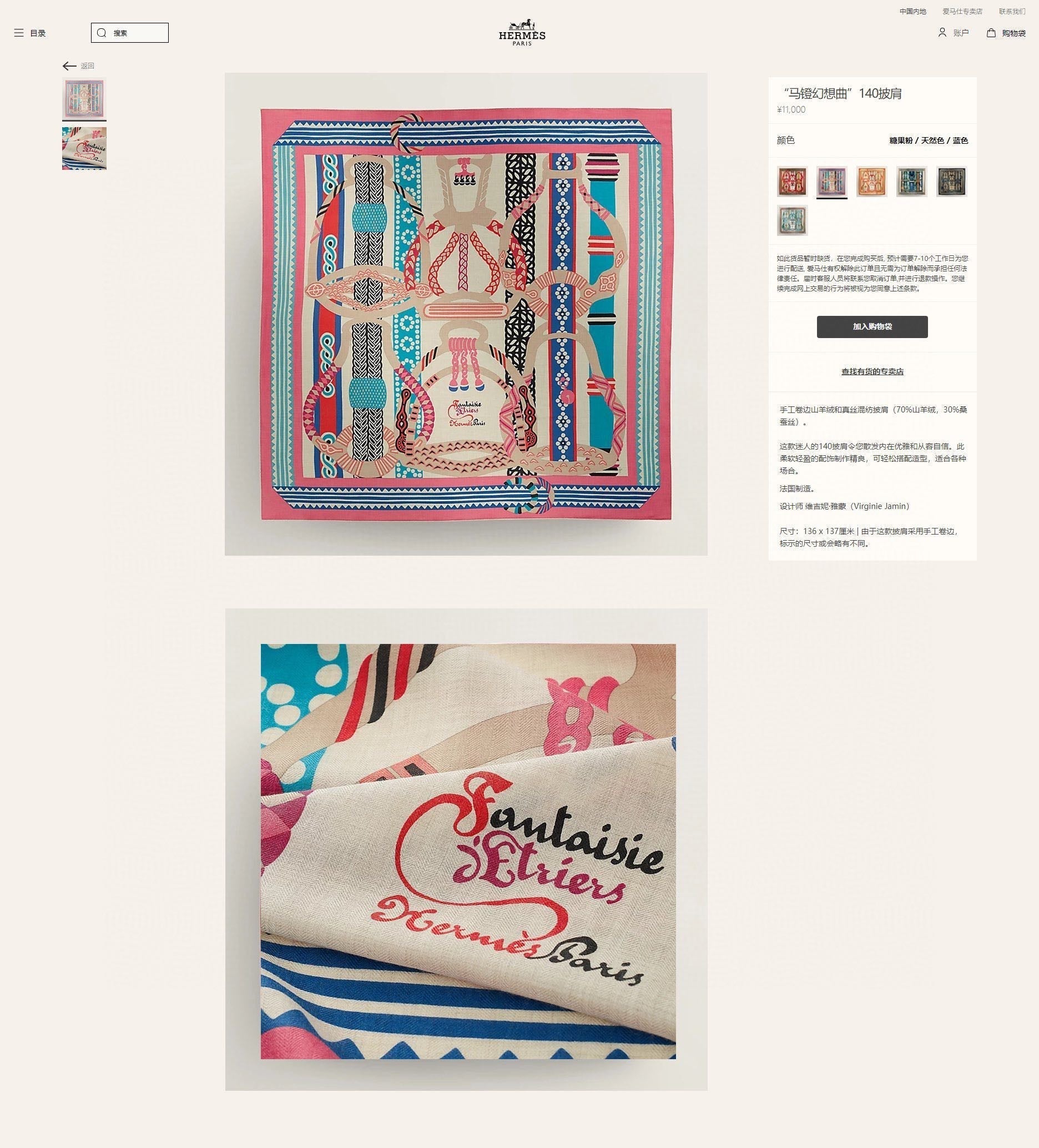 - Material: 70% Mashmere, 30% Slik