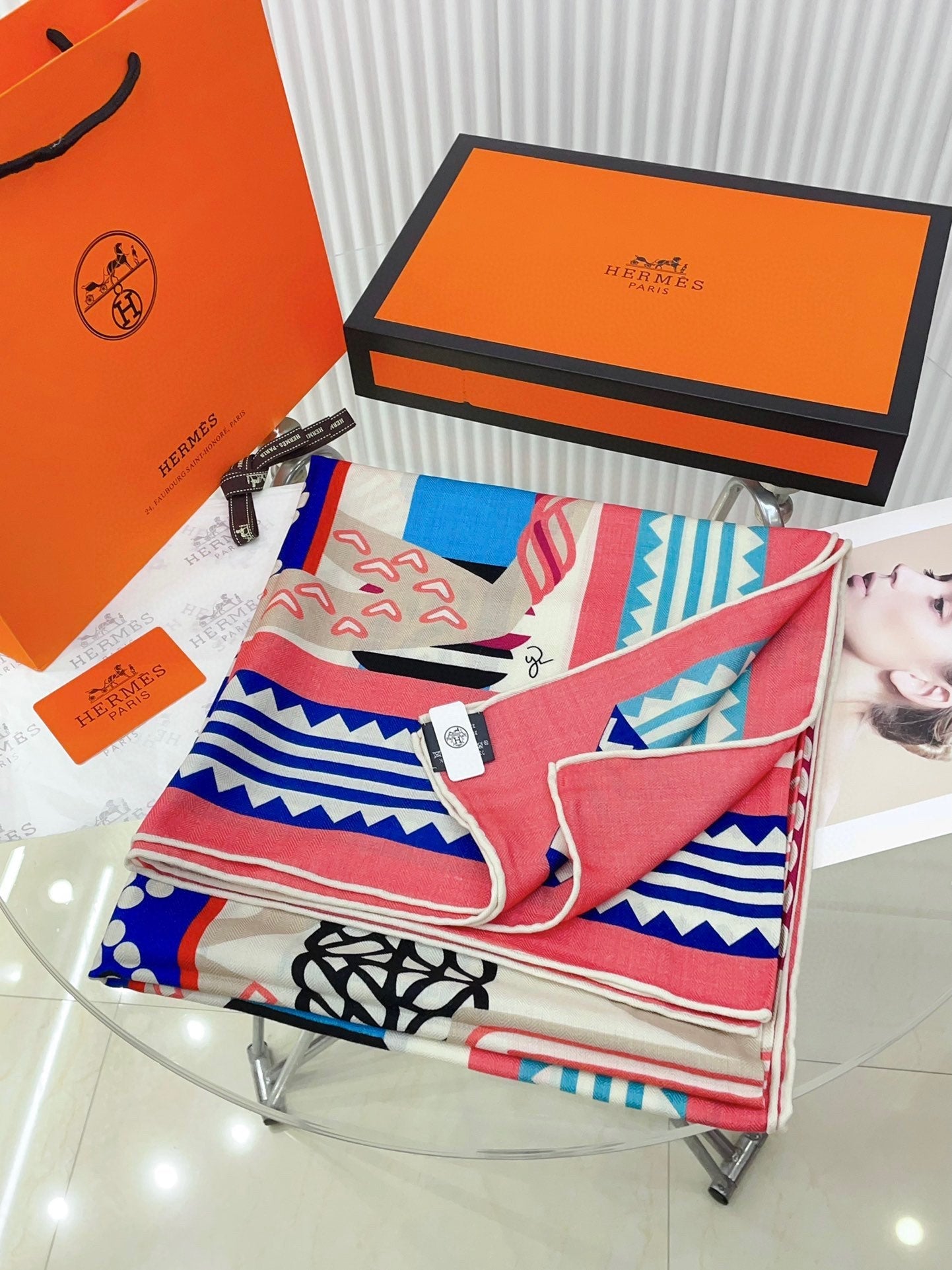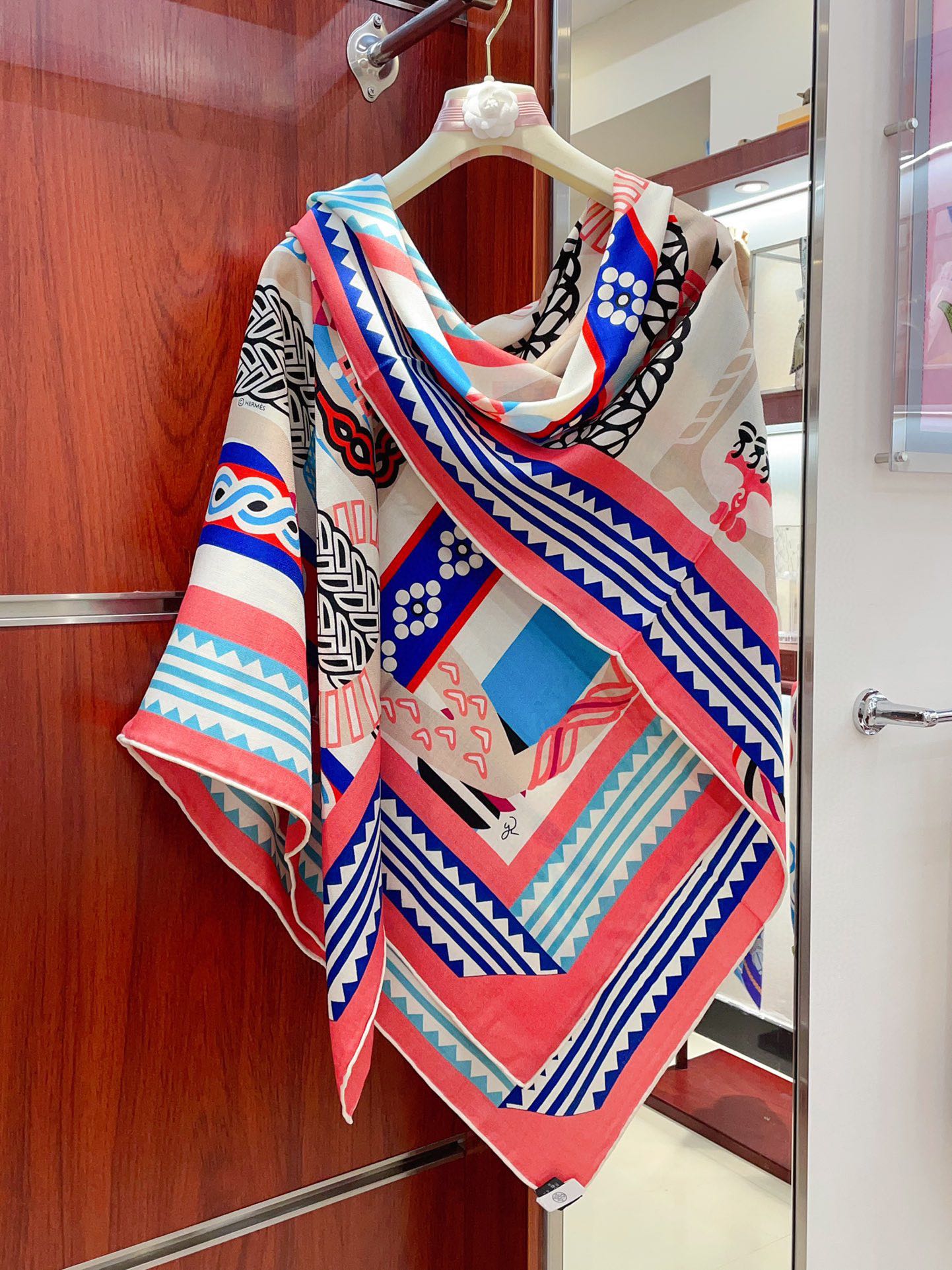 Fantaisie d'Etriers Shawl 135 CM Pink Colorful Cashmere And Silk 402082