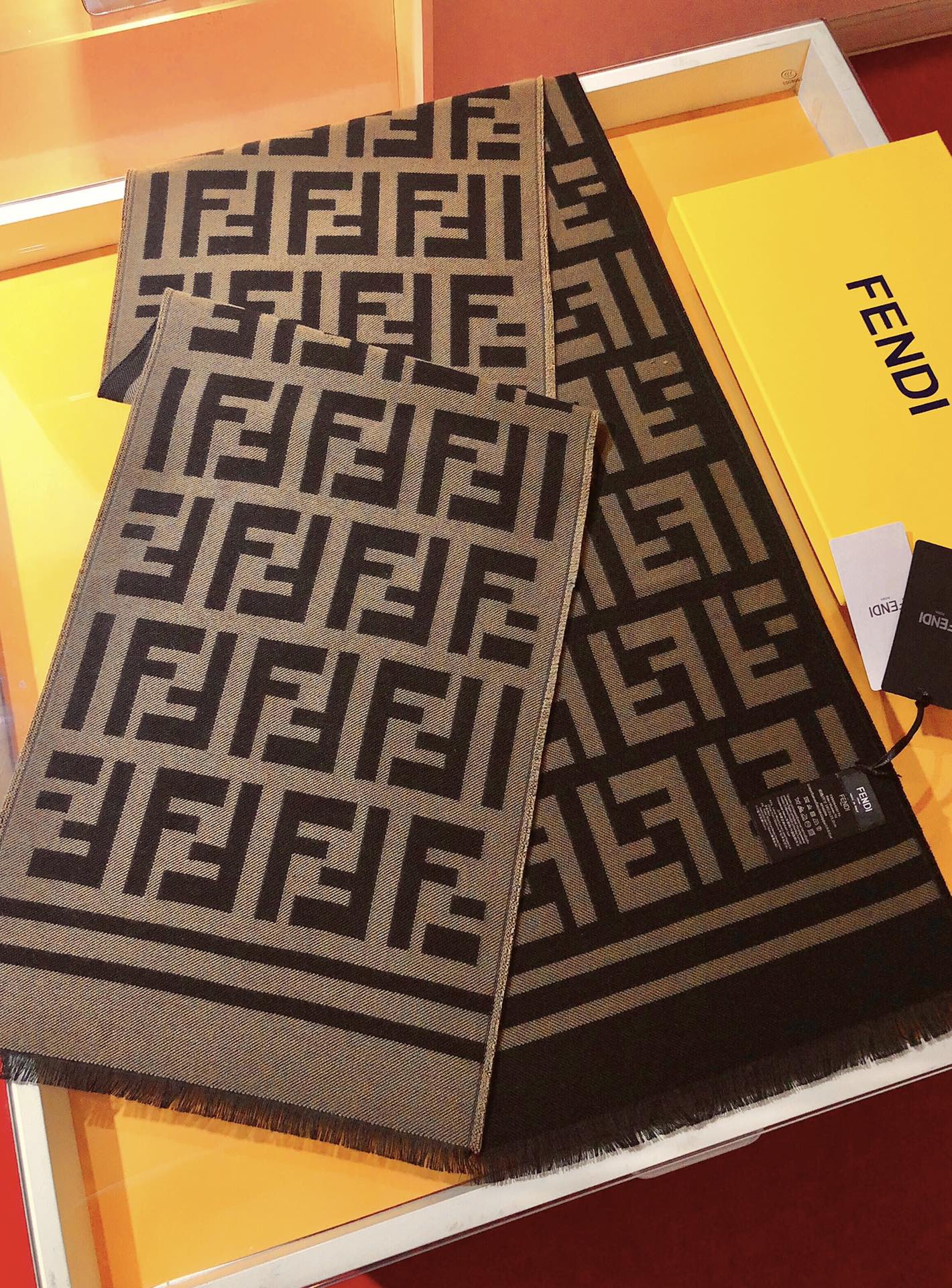 FF Jacquard 180CM Scarf Brown Wool 103256