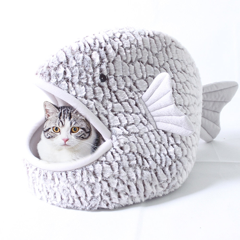 FISHIA - Lit d'Hiver pour Chat Design Poisson