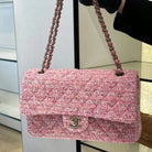 flap bag medium 25 pink tweed silver hardware