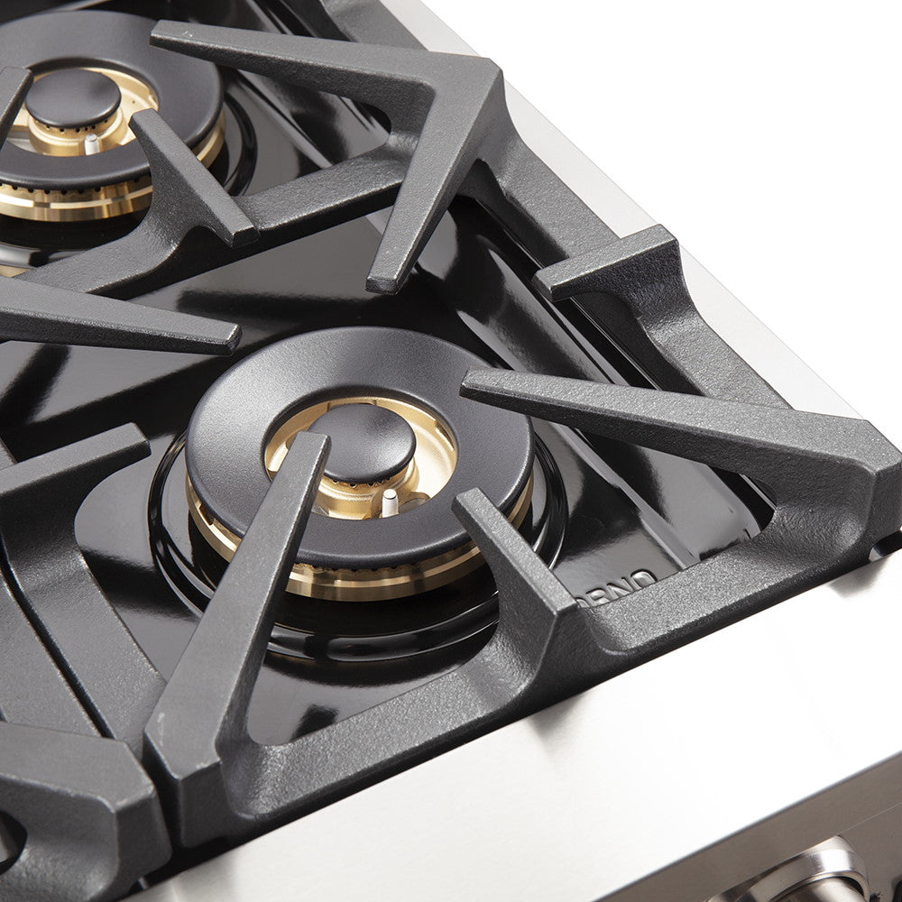 - Brass Burners - Elegant brass burners effectively channel heat for desired cooking results.