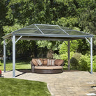Relax in the shade under this gazebo that you can leave up the year-round saving yourself the trouble of assembling and disassembling at the end of the season. This gazebo is made of extruded aluminum and a reinforced polycarbonate roof. Entertain family and friends with barbecues, parties, and outdoor fun.