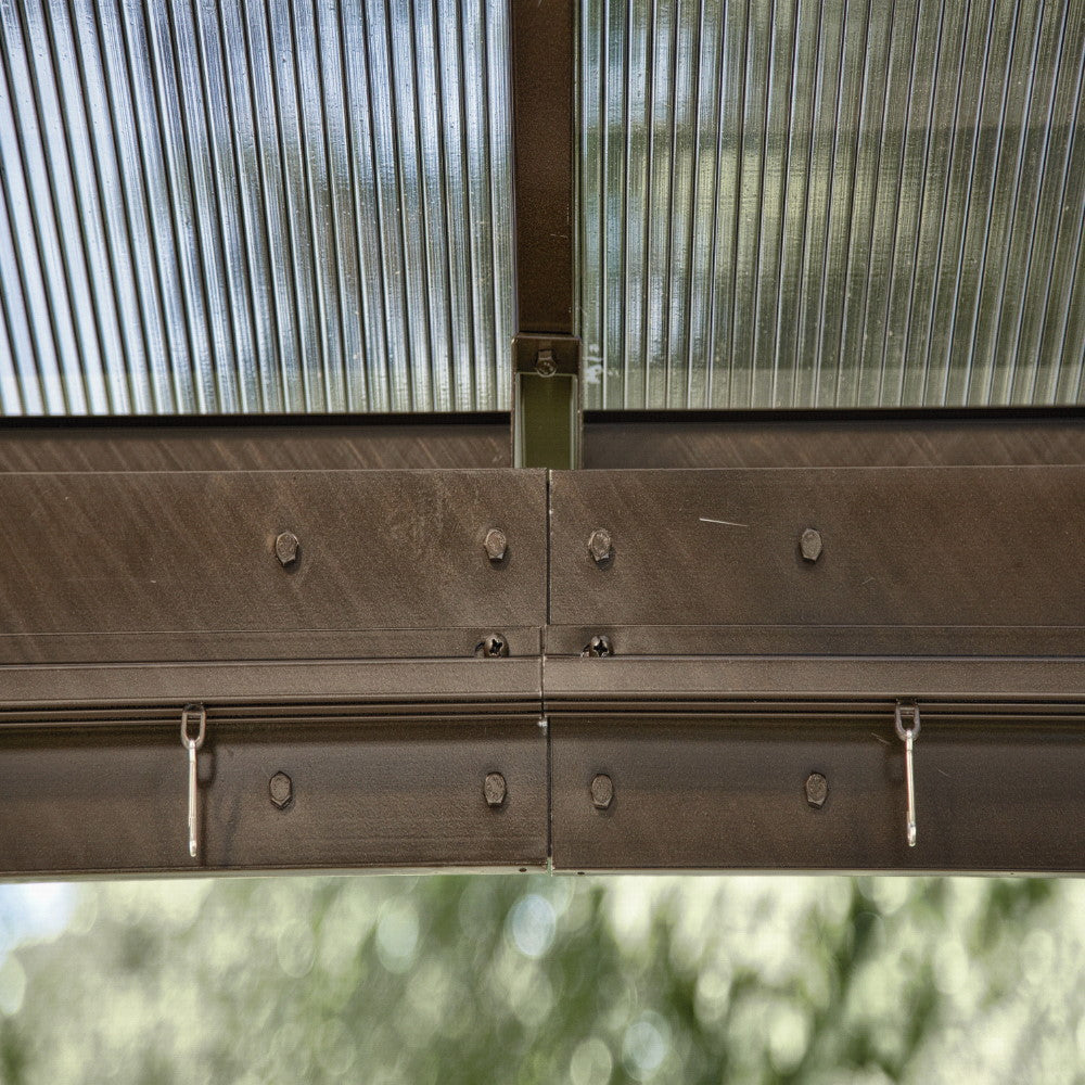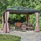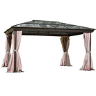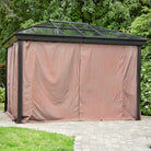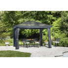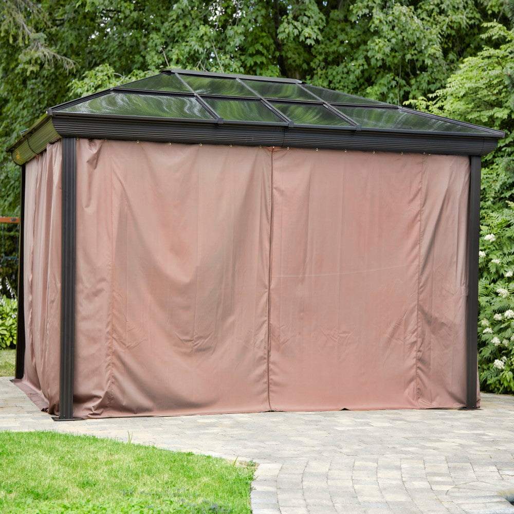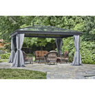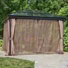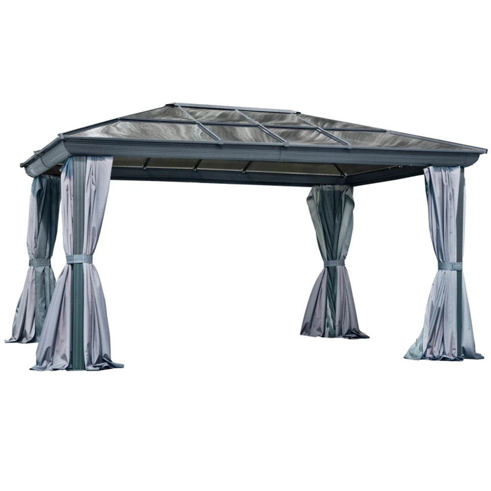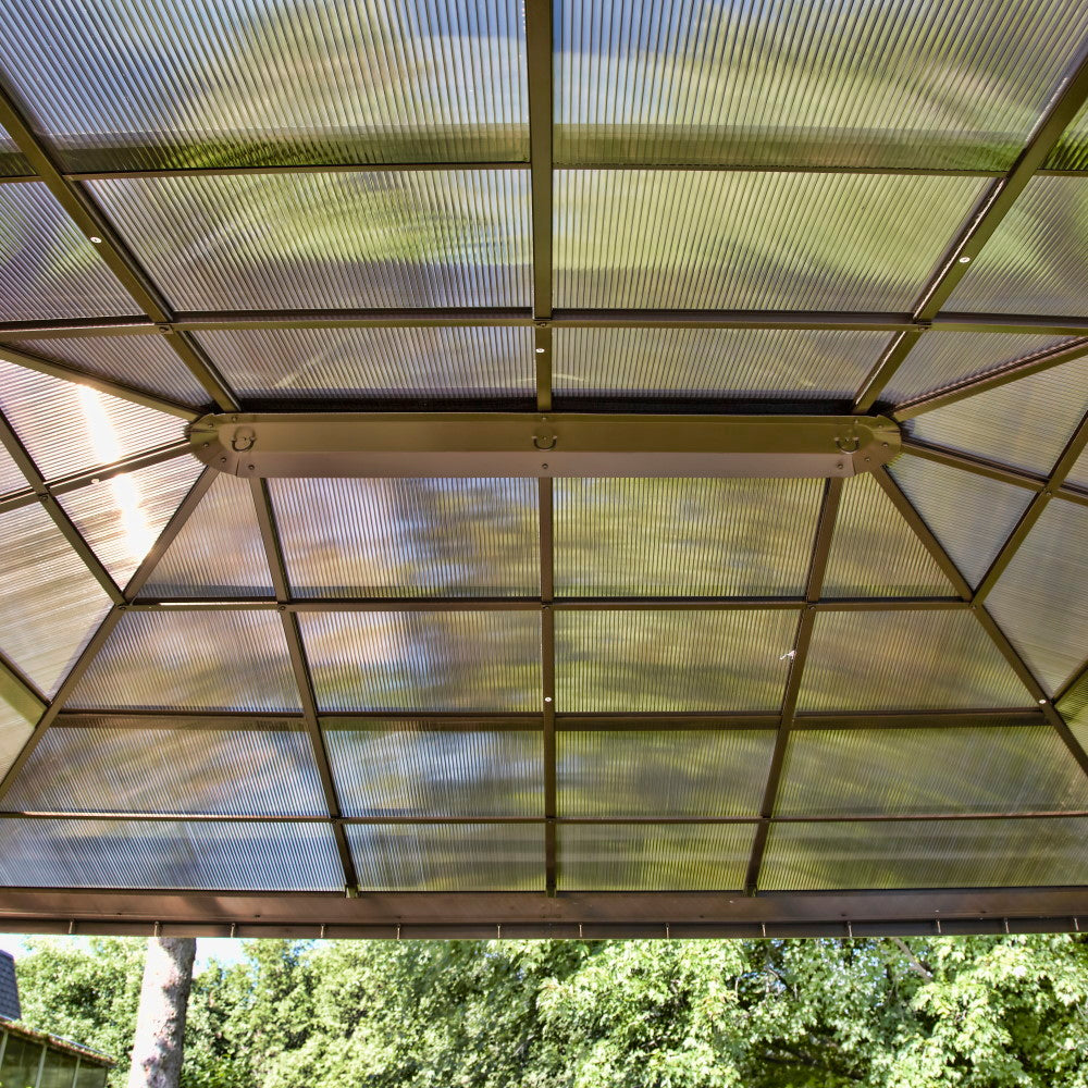 Relax in the shade under this Venus gazebo, and when the bugs start biting, use the screening to keep them out. This gazebo is made of extruded aluminum and features a roof made of a reinforced polycarbonate, which can be left up year-round saving yourself the trouble of assembling and disassembling at the end of the season.