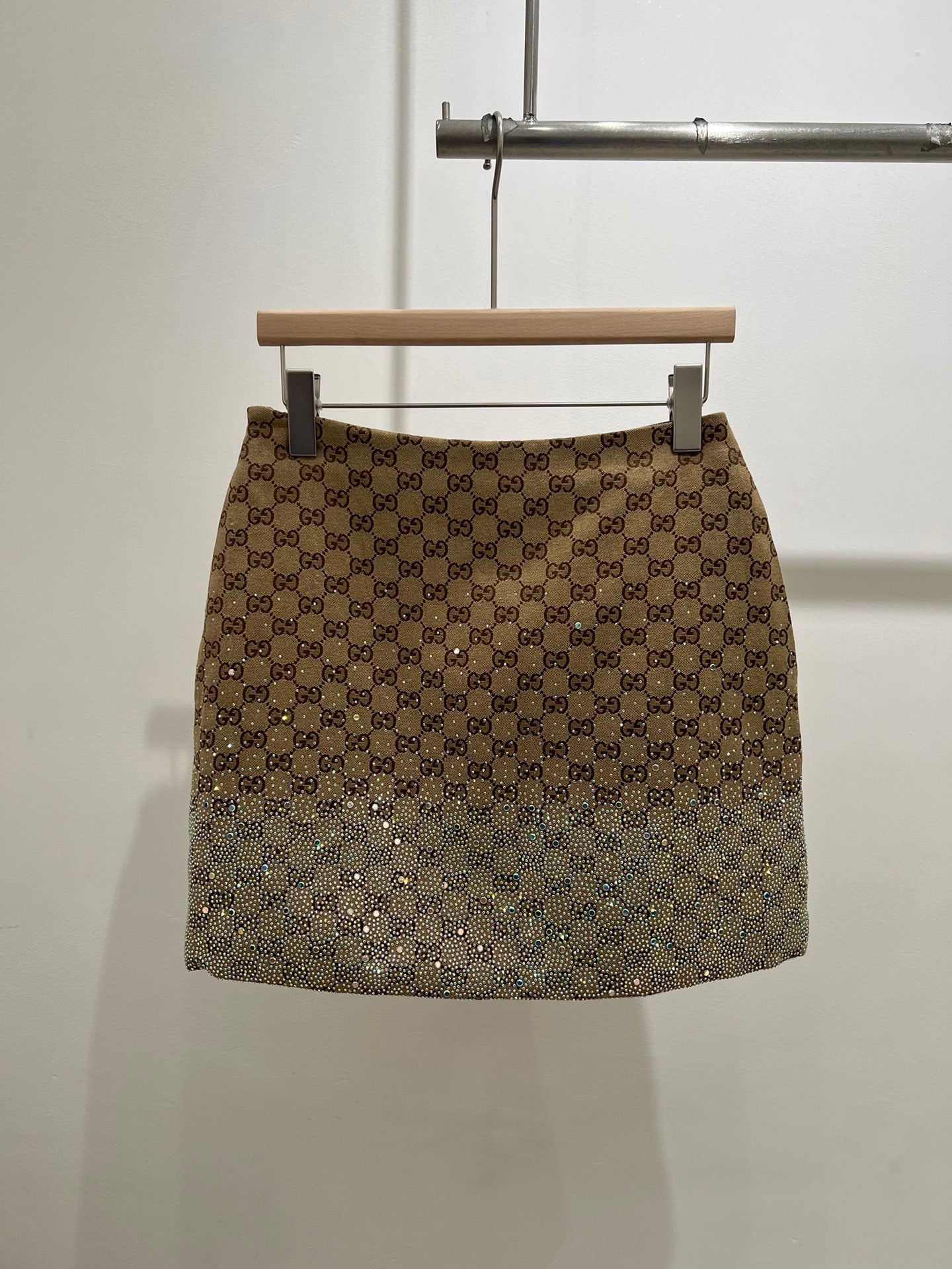 GG Beige Monogram Crystal Embellished Mini Skirt