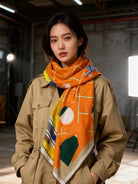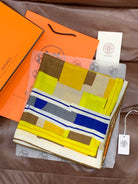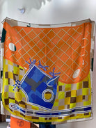 HM 25s Checkered Horse Scarf 140cm Orange Yellow Cashmere Silk 970932