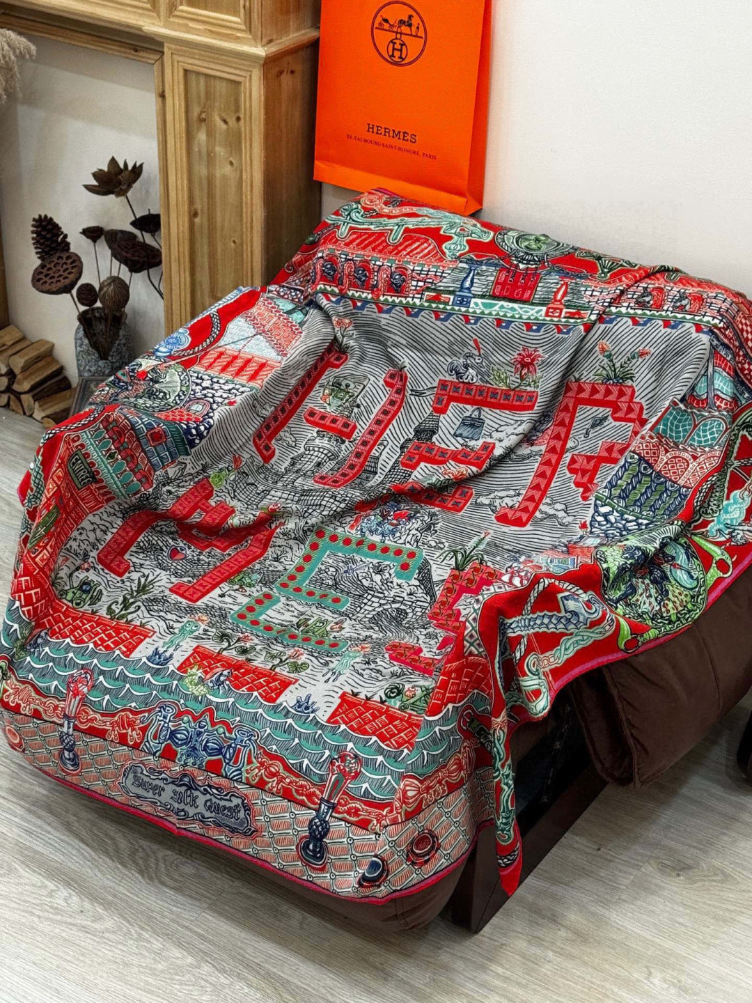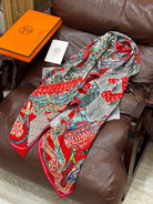 HM 25s Essential Scarf 140cm Red Colorful Cashmere Silk 968742