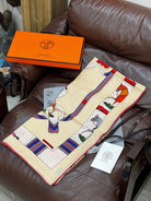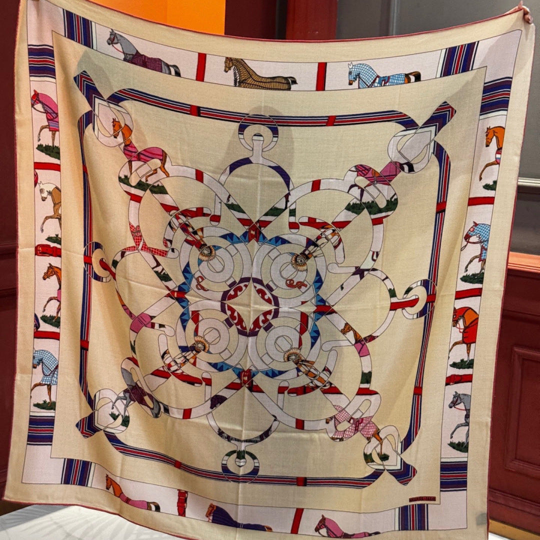 HM 25s Golden Spurs Scarf 140cm Beige Blue Cashmere 976284
