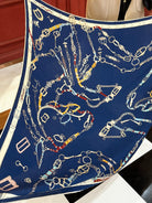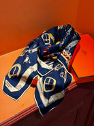 HM 25s Horse Reversible Scarf 140cm Blue Cashmere Silk 967390