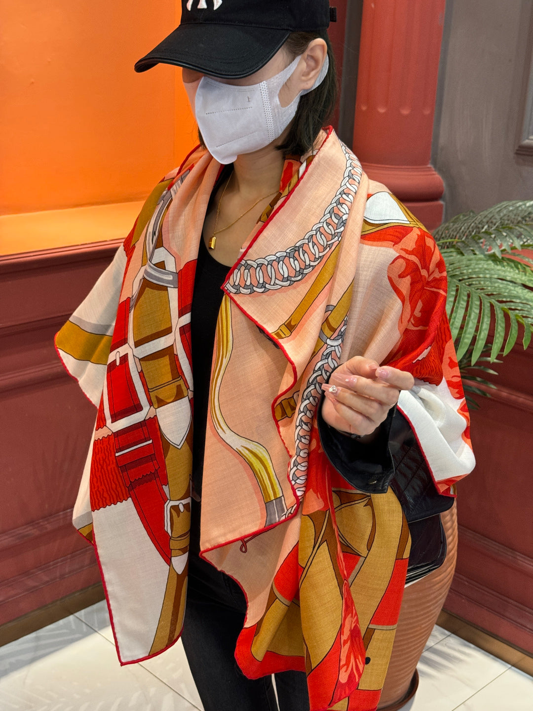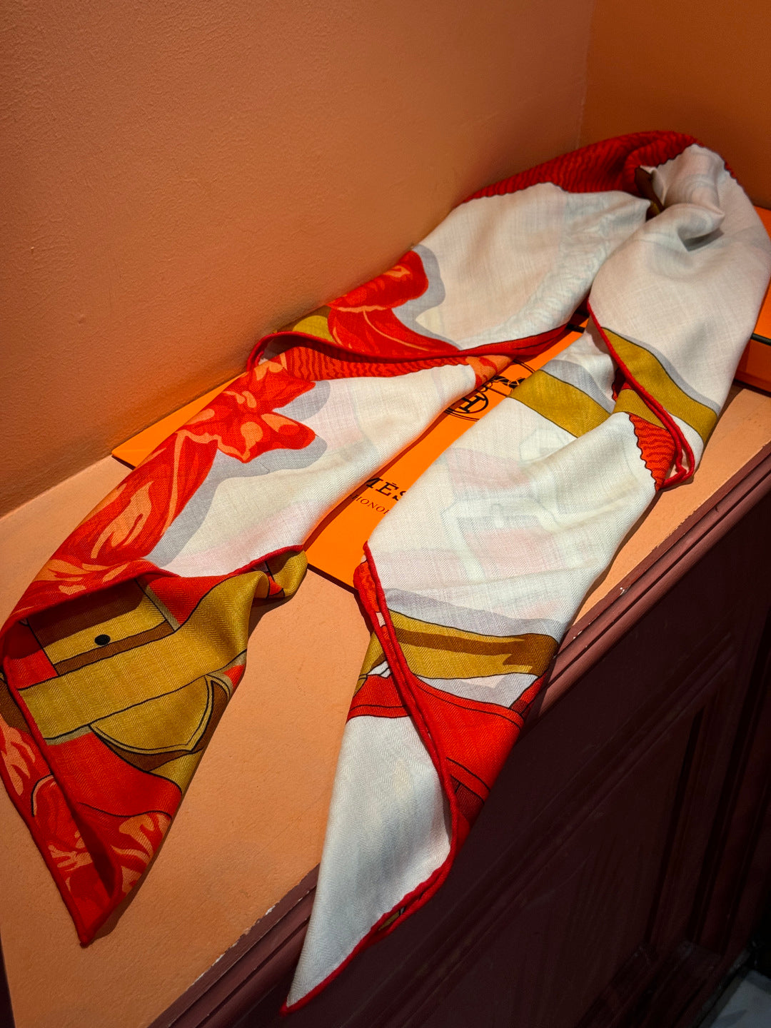 HM 25s Horse Reversible Scarf 140cm Orange Beige Cashmere Silk 967378