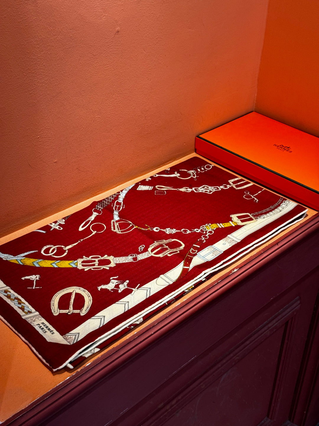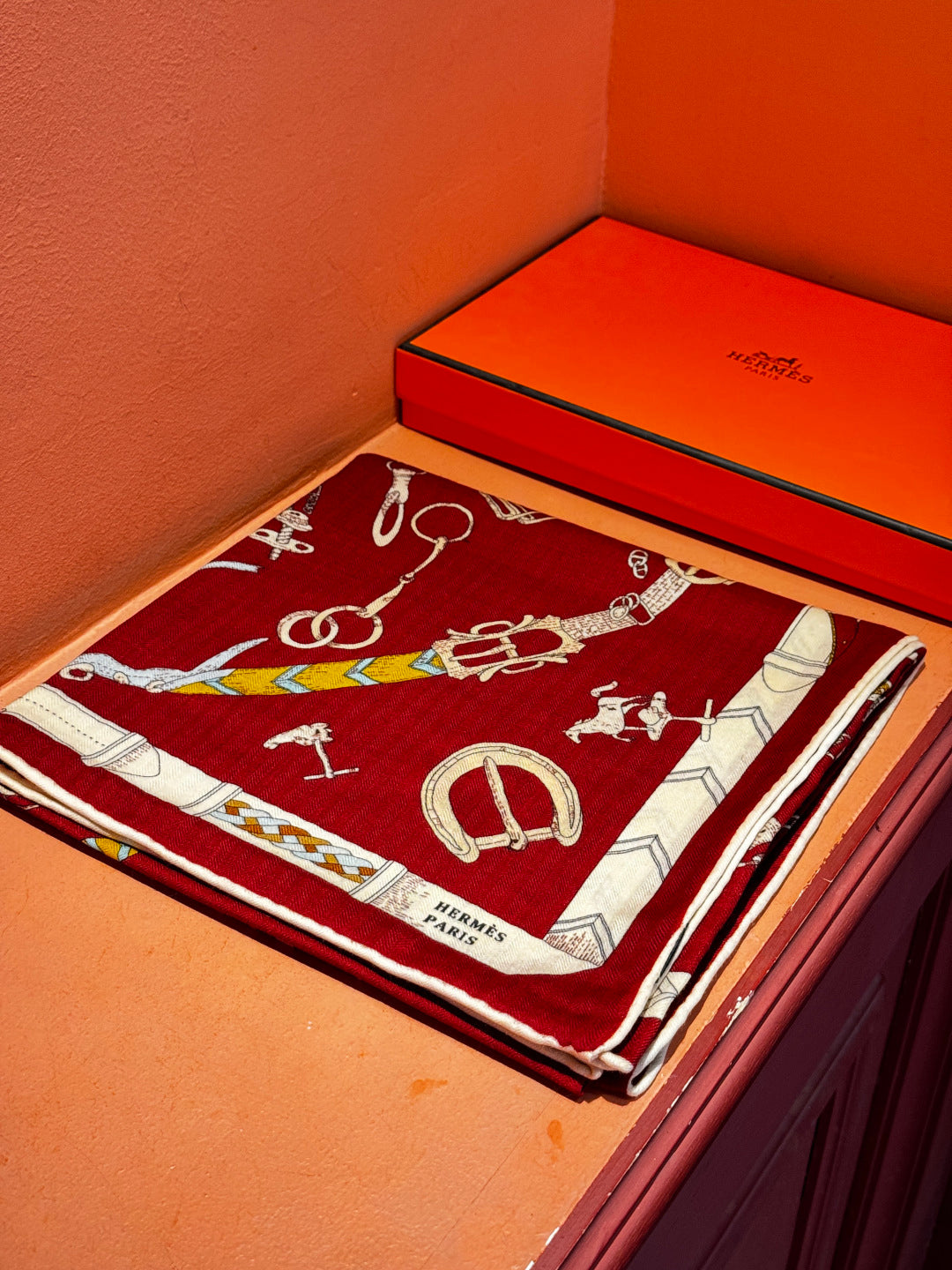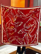 HM 25s Horse Reversible Scarf 140cm Red Cashmere Silk 967389