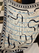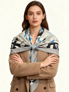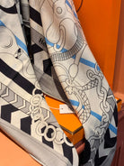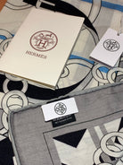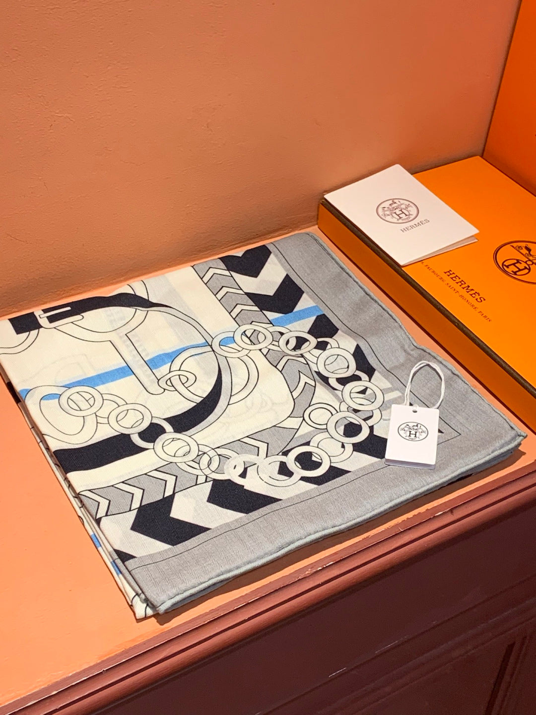 HM 25s Horse Reversible Scarf 140cm White Gray Black Cashmere Silk 967388