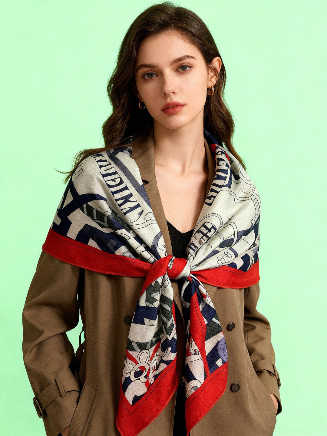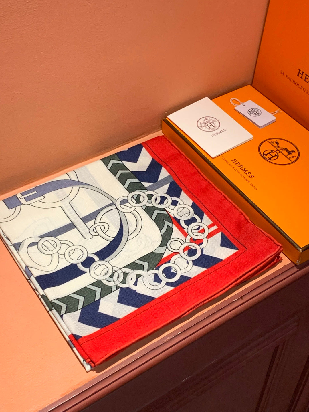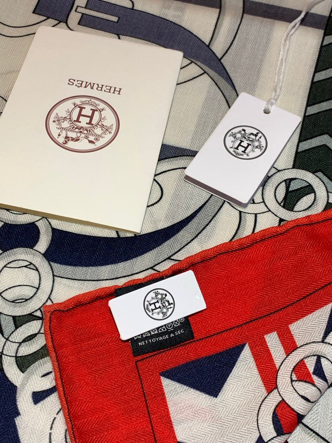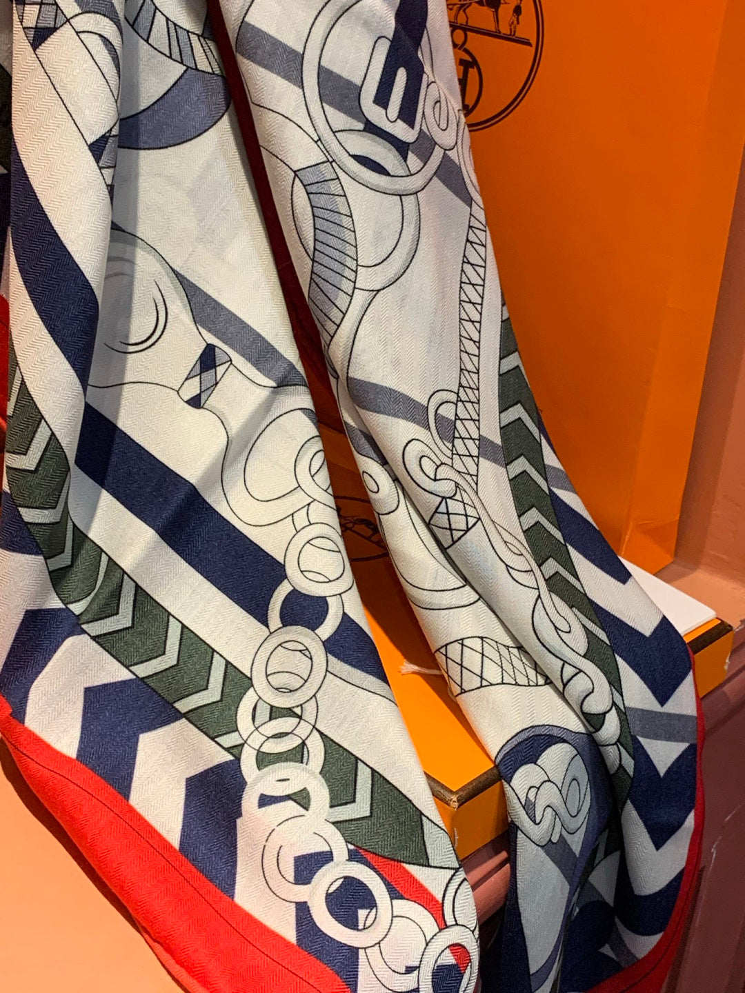 HM 25s Horse Reversible Scarf 140cm White Red Black Cashmere Silk 967387