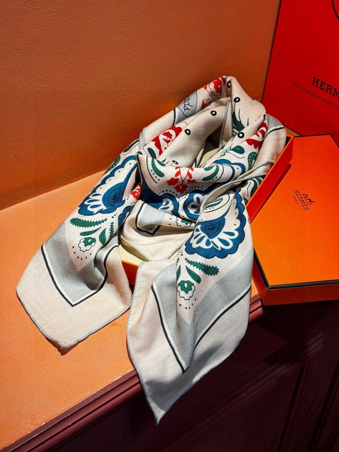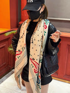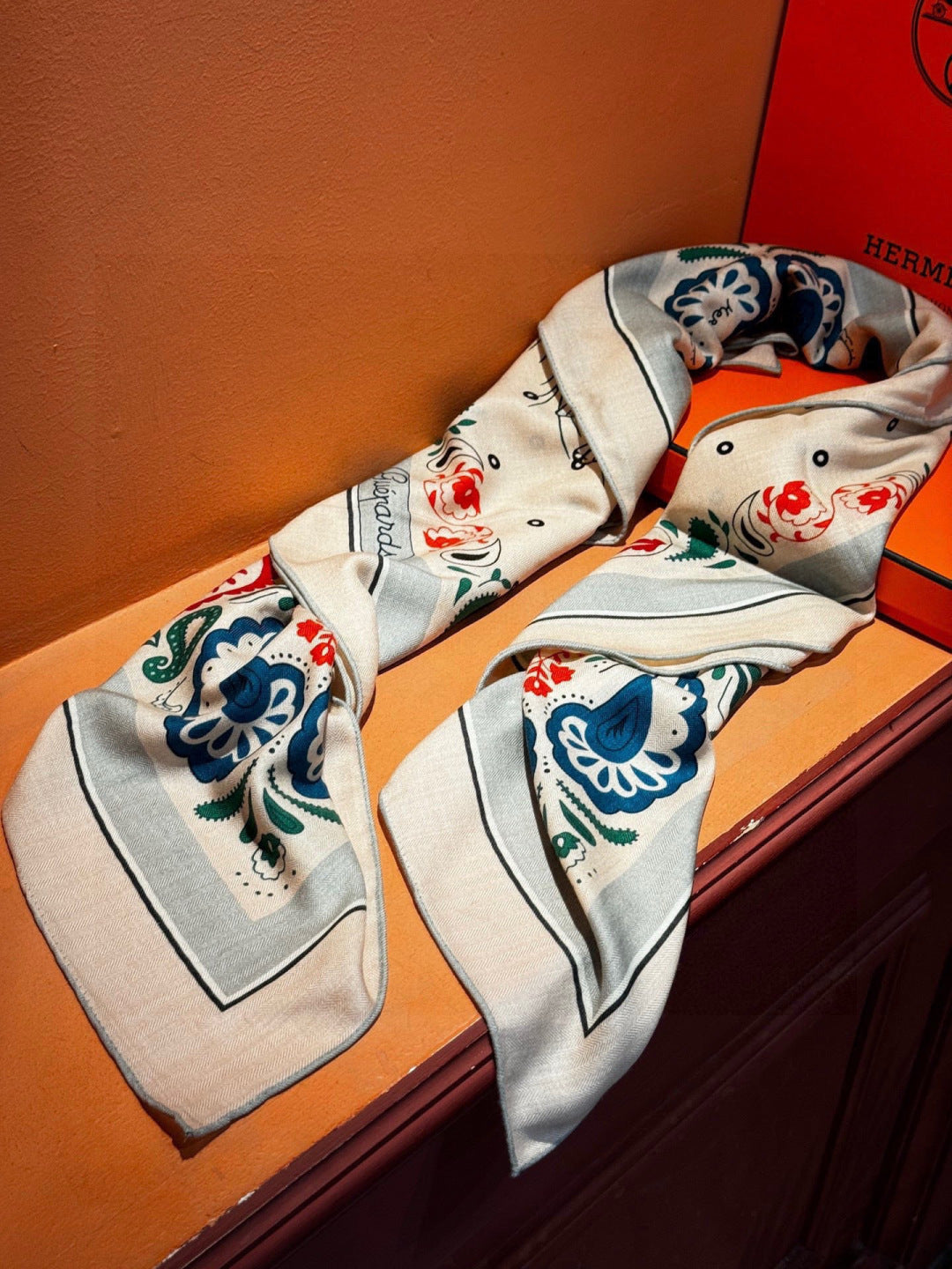 HM 25s Jungle Love Scarf 140cm Beige Blue Cashmere 976288