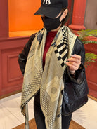 HM 25s Reversible Scarf 140cm Beige Black Cashmere 976278