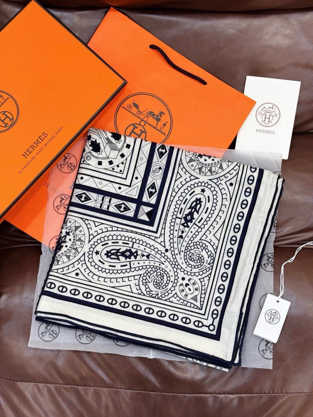 HM 25s Reversible Scarf 140cm White Black Cashmere 976274