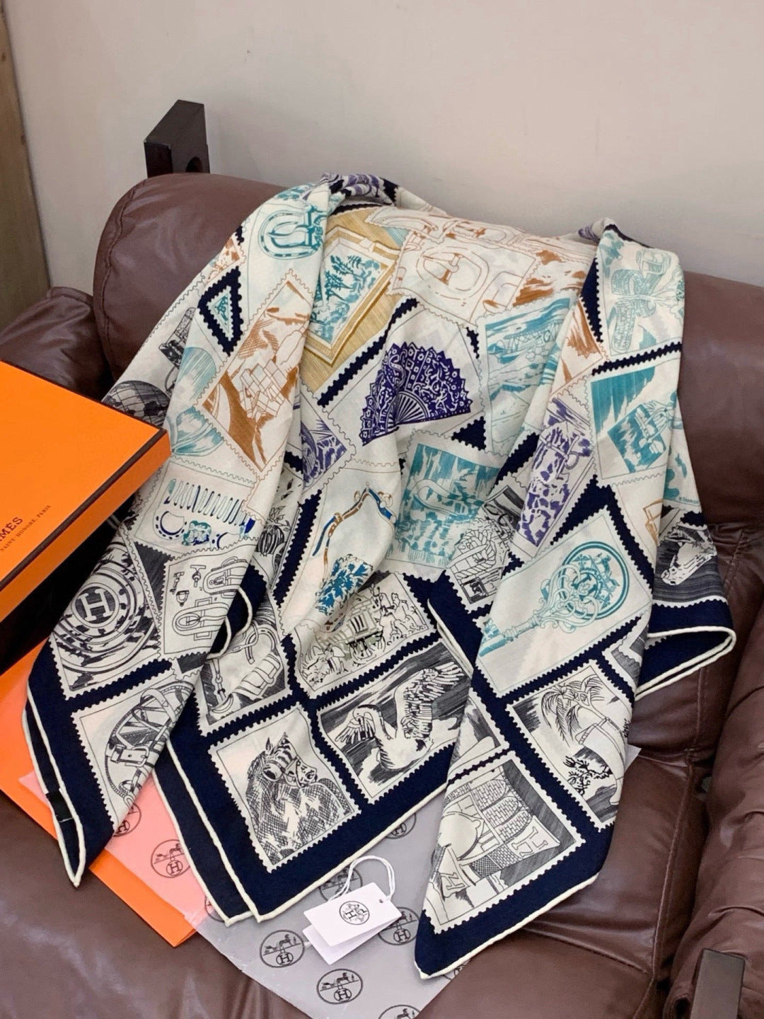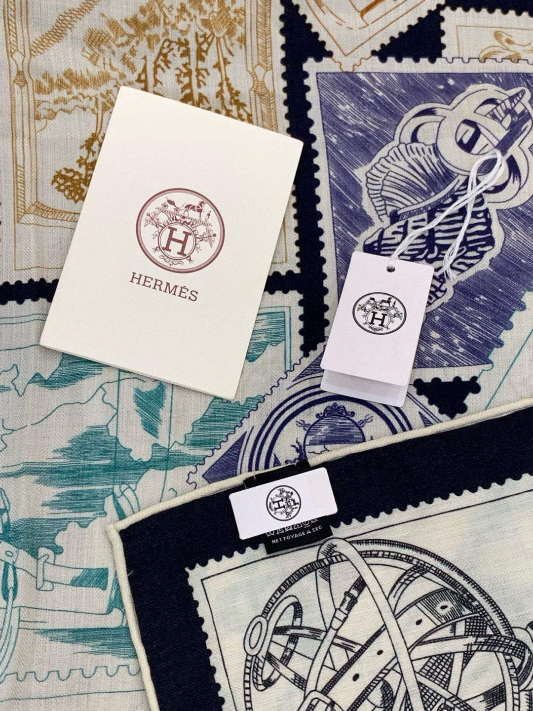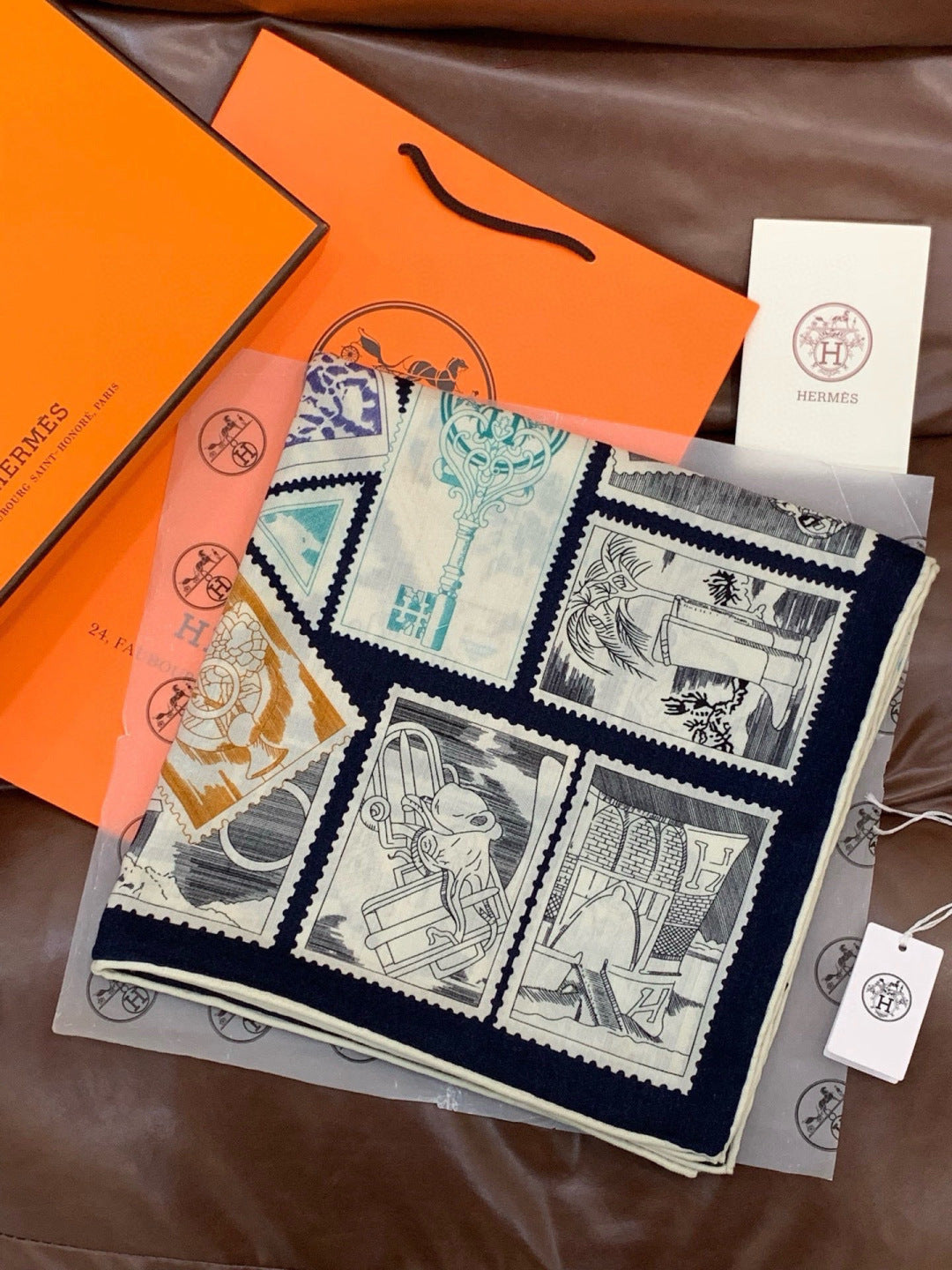 HM 25s Scarf 140cm Black Light Blue Cashmere 973061