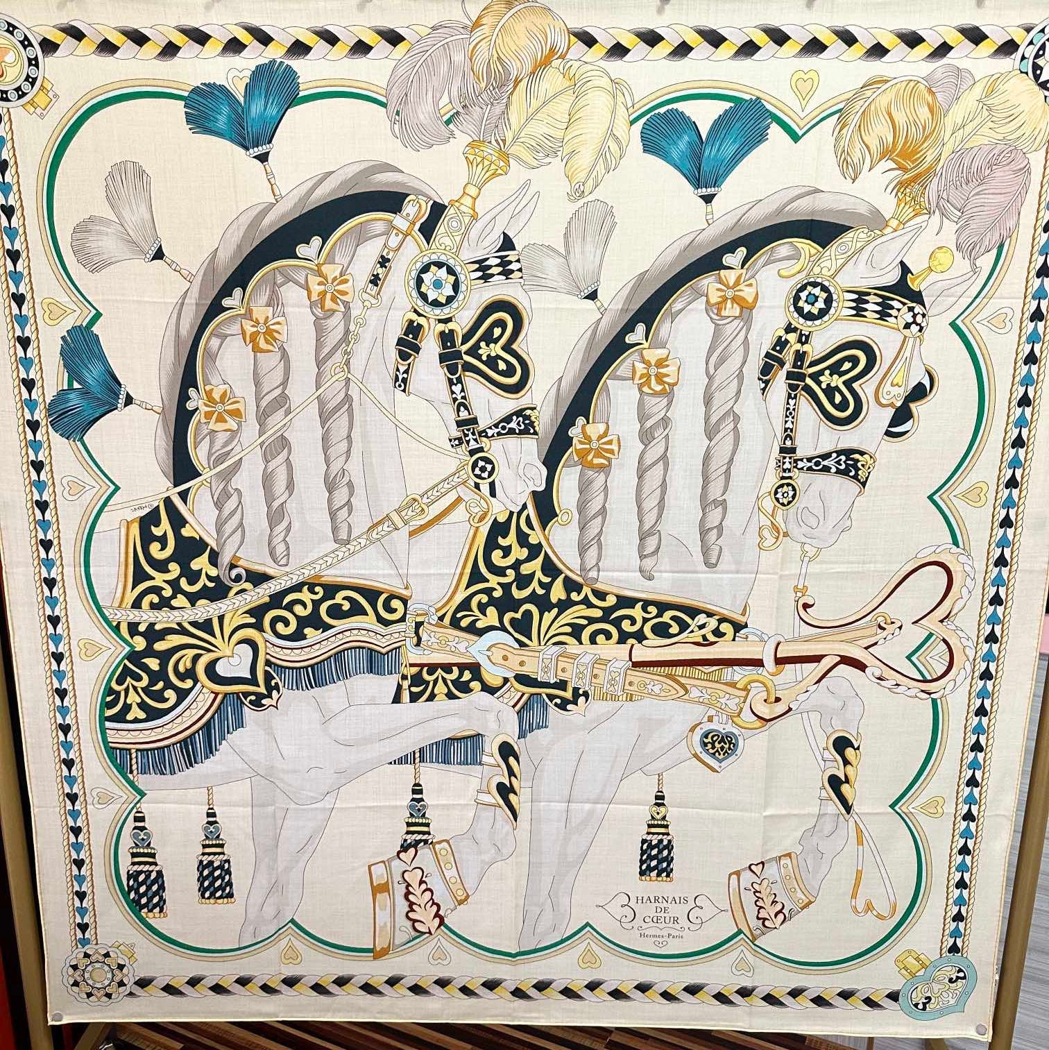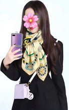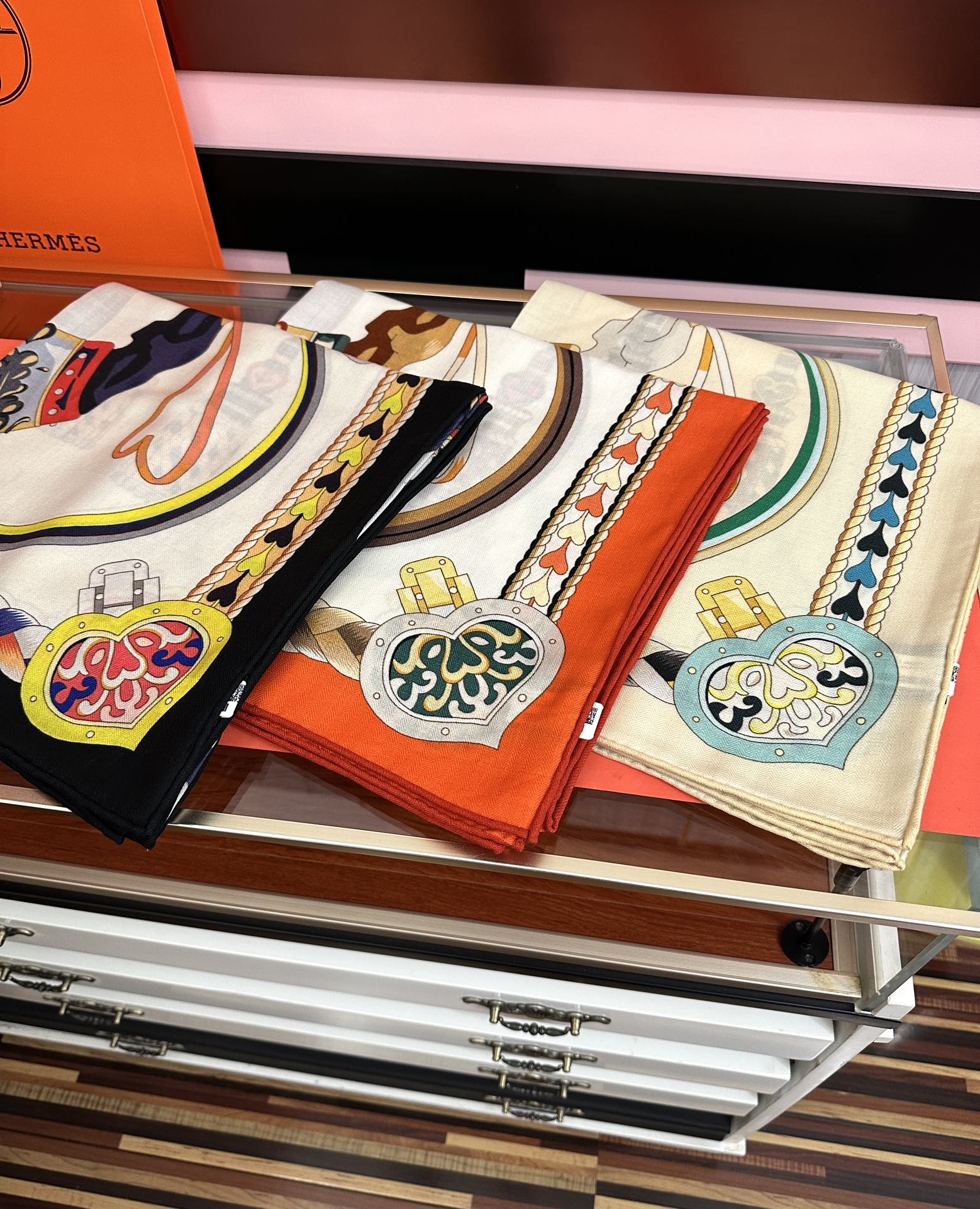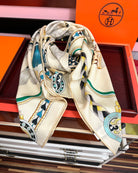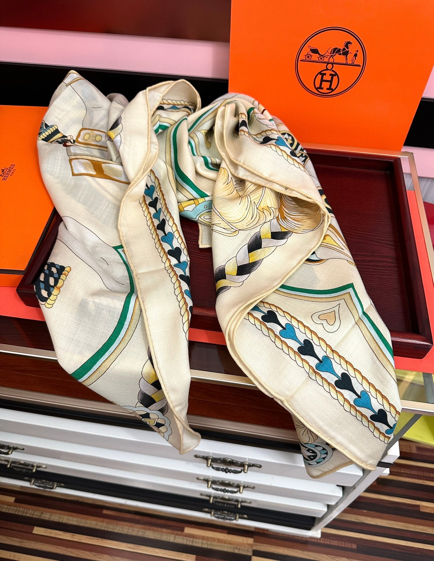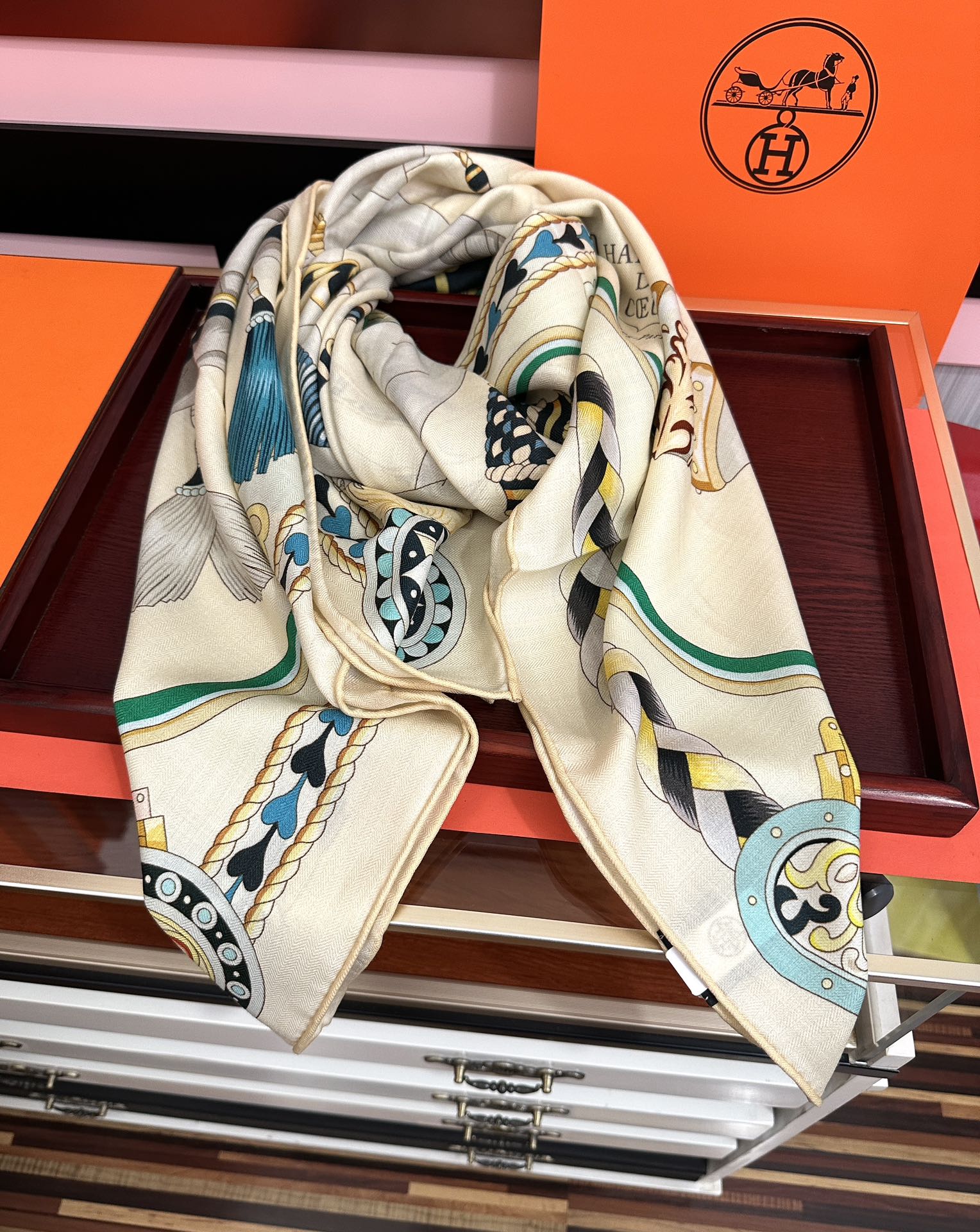 HM 25s Scarf 140cm Beige Blue Cashmere Silk 965624