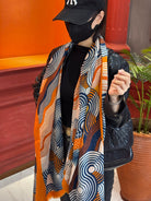 HM 25s Scarf 140cm Orange Black Cashmere 976203