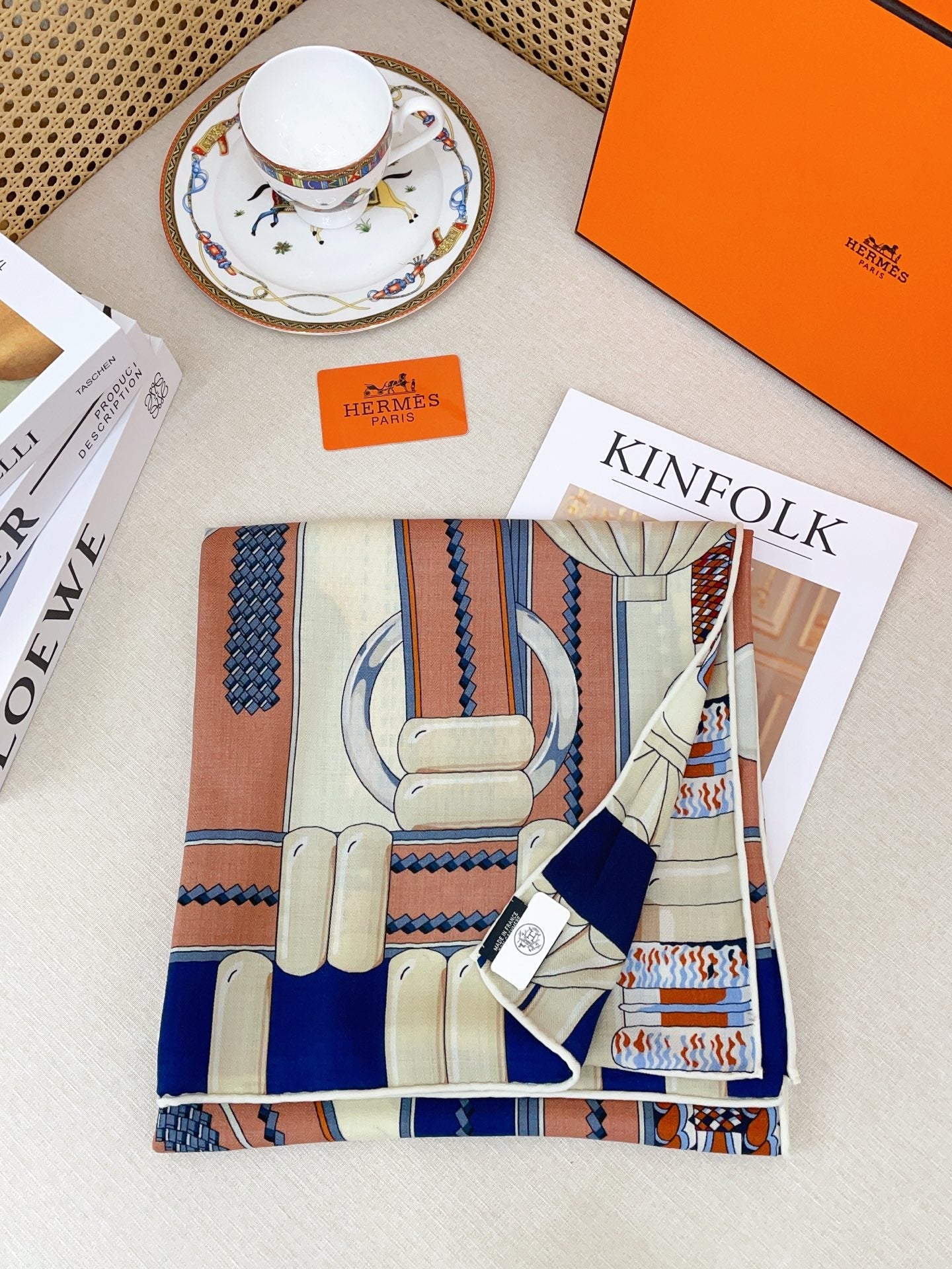 HM 25s Scarf 140cm Brown Blue Beige Cashmere 973323