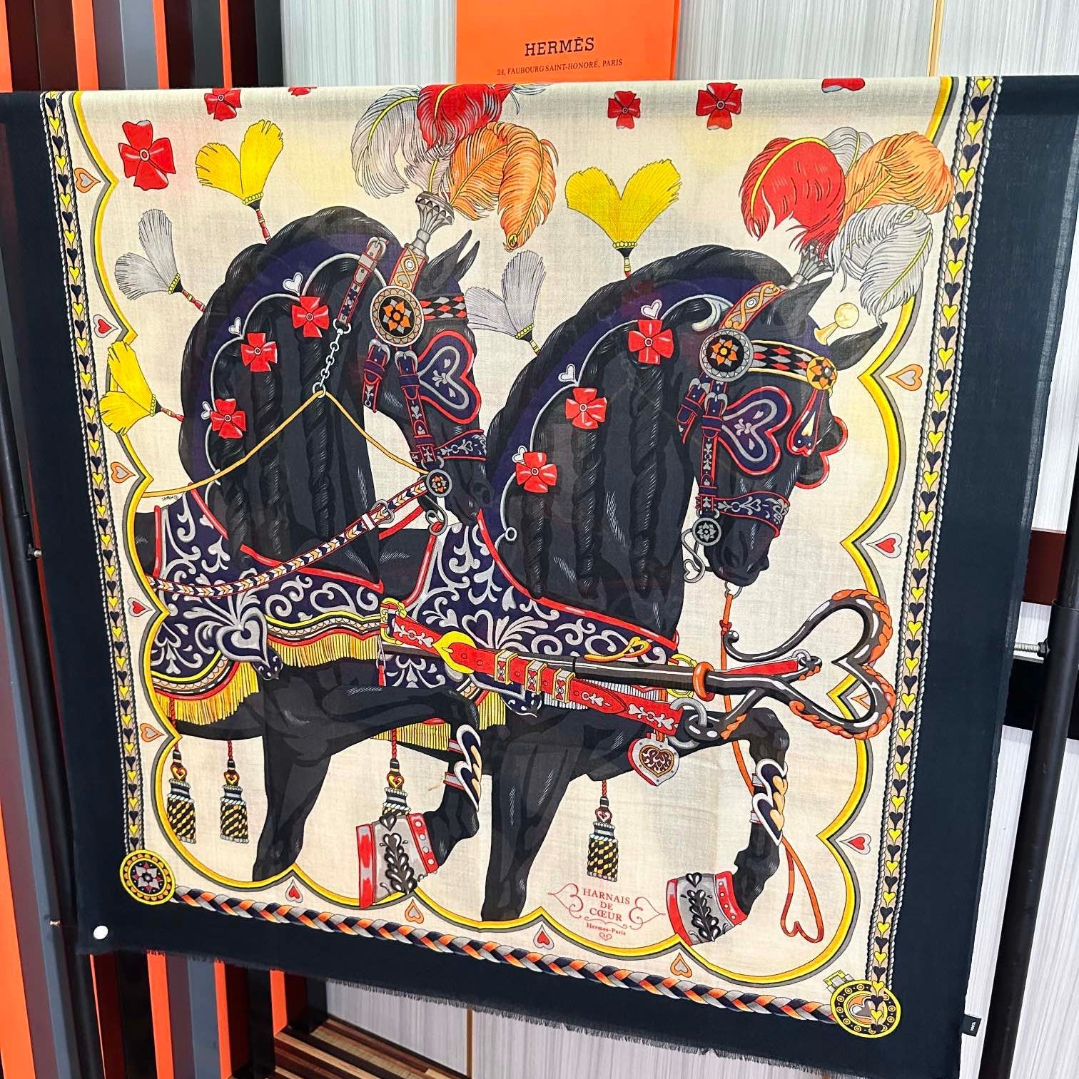 HM 25s Scarf 200cm Black Beige Cashmere 976423