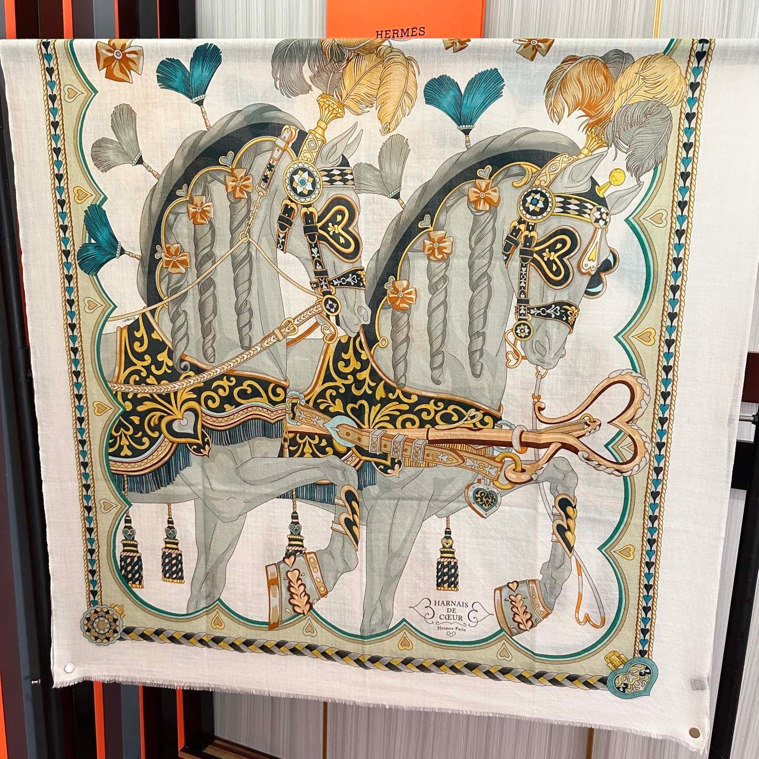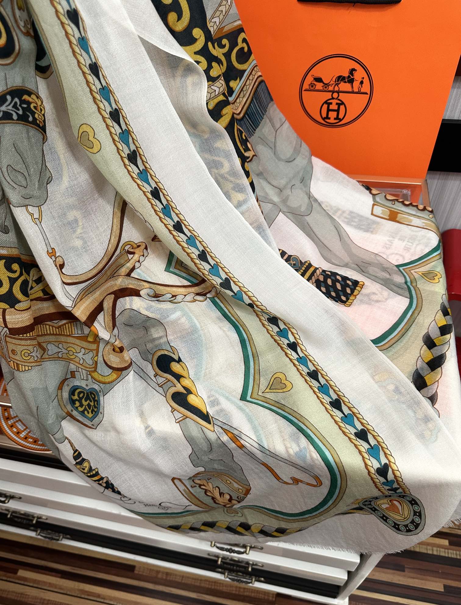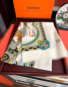 HM 25s Scarf 200cm White Beige Blue Cashmere 976425