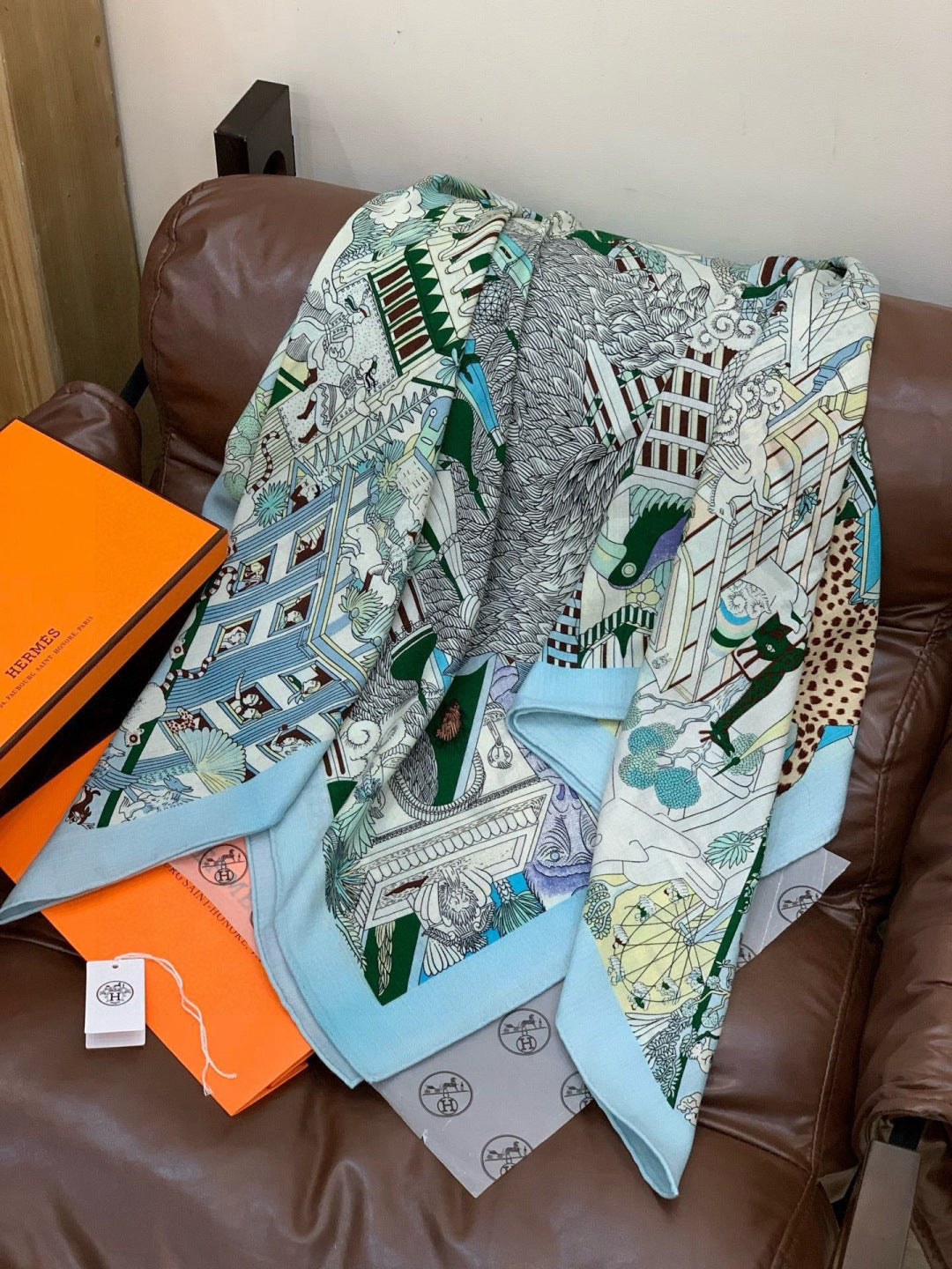 HM 25s The King Scarf 140cm Blue Black Cashmere 973040