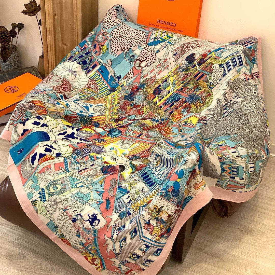 HM 25s Scarf 140cm Blue Multicolor Cashmere 973038